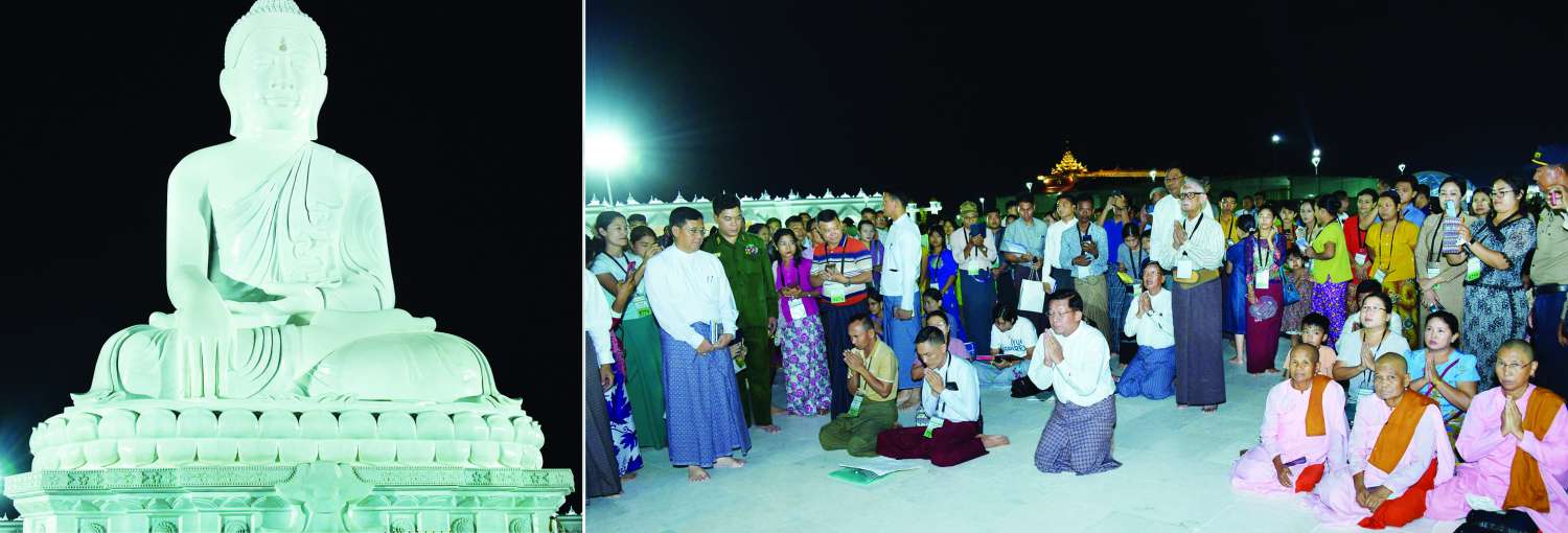 ဦးစွာ နိုင်ငံတော်စီမံအုပ်ချုပ်ရေးကောင်စီဥက္ကဋ္ဌ၏ အကြံပေးပုဂ္ဂိုလ် ဒုတိယဗိုလ်ချုပ်ကြီးညိုစောက နိုင်ငံတော်စီမံအုပ်ချုပ်ရေးကောင်စီဥက္ကဋ္ဌ နိုင်ငံတော်ဝန်ကြီးချုပ်၏ လမ်းညွှန်ချက်များနှင့်အညီ ဘုရားဖူးလာပြည်သူများ အေးငြိမ်းချမ်းသာစွာဖြင့် ဘုရားဖူးနိုင်ရေး စီမံဆောင်ရွက်ထားရှိမှု၊ အနယ်နယ်အရပ်ရပ်မှ ရဟန်းရှင်လူပြည်သူများ၊ ဝန်ထမ်းများ၊ ကျောင်းသား၊ ကျောင်းသူများနှင့် ပြည်ပမှနိုင်ငံခြားသားဧည့်သည်များ နေ့အလိုက် လာရောက်ဖူးမြော်ကြည်ညိုလျက်ရှိရာ စတင်ဖွင့်လှစ်သည့်နေ့မှ ယခုလ ၃၀ ရက်အထိ ဘုရားဖူးလာသံဃာတော် ၈၂၄၁ ပါး၊ သီလရှင် ၁၉၉၈ ပါး၊ လူပုဂ္ဂိုလ် ၃၂၇၈၇၁ ဦး စုစုပေါင်း ၃၃၈၁၁၀ လာရောက်ဖူးမြော်ကြည်ညိုခဲ့မှု၊ ရဟန်း၊ သံဃာ၊ သီလရှင်များ၊ ကျောင်းအစီအစဉ်ဖြင့်လာရောက်သည့် ကျောင်းသား၊ ကျောင်းသူများကို အခမဲ့ဖူးမြော်ခွင့်နှင့် ဝန်ထမ်းများအား ဝန်ထမ်းကတ်ဖြင့် ၅၀ ရာခိုင်နှုန်း လျှော့ချကောက်ခံရန် လျာထားဆောင်ရွက်ထားရှိမှု၊ Ticket House တည်ဆောက်ပြီးစီးမှုနှင့် စမ်းသပ်ဆောင်ရွက်လျက်ရှိမှု၊ ပြည်တွင်း၊ ပြည်ပဘုရားဖူးများက စေတနာသဒ္ဓါတရားထက်သန်စွာဖြင့် အလှူငွေများ လှူဒါန်းလျက်ရှိမှု၊ မာရဝိဇယ ဗုဒ္ဓရုပ်ပွားတော်မြတ်ကြီးသို့ ပရဟိတအသင်းများက အထောက်အကူပြုပစ္စည်းများ လာရောက်လှူဒါန်းလျက်ရှိမှု၊ ဘုရားဖူးလာပြည်သူများ သောက်သုံးရေအဆင်ပြေစေရေး နေပြည်တော်သောက်ရေသန့်များ စီစဉ်ဆောင်ရွက်ပေးထားမှု၊ ဘုရားကြီးပတ်ဝန်းကျင်သန့်ရှင်းသာယာ လှပမှုရှိစေရေး ဆောင်ရွက်ထားရှိမှု၊ လျှပ်စစ်မီးသုံးစွဲမှု သက်သာစေရေး နေရောင်ခြည်စွမ်းအင်သုံးလျှပ်စစ်မီးများ တပ်ဆင်ဆောင်ရွက်ထားရှိမှု၊ ဘုရားဖူးမော်တော်ယာဉ်များနှင့် မော်တော်ဆိုင်ကယ်များ ရပ်နားရန်နေရာများ စီစဉ်ဆောင်ရွက်လျက်ရှိမှု၊ မာရဝိဇယဗုဒ္ဓရုပ်ပွားတော်မြတ်ကြီး နာယကအဖွဲ့၊ ထိန်းသိမ်းစောင့်ရှောက်ရေးဦးစီးကော်မတီ၊ ဂေါပကအဖွဲ့၊ အထောက်အကူပြုအဖွဲ့များဖွဲ့စည်းရန် လျာထားမှုနှင့် ဘုရားကြီးဝေယျာဝစ္စနှင့် ဆက်စပ်လုပ်ငန်းများဆောင်ရွက်နိုင်ရန် စီမံဆောင်ရွက်လျက်ရှိမှု၊ မာရဝိဇယ ဗုဒ္ဓရုပ်ပွားတော်မြတ်ကြီး ရေရှည်တည်တံ့ခိုင်မြဲရန် ဆောင်ရွက်သွားမည့်အခြေအနေများကို ရှင်းလင်းတင်ပြသည်။