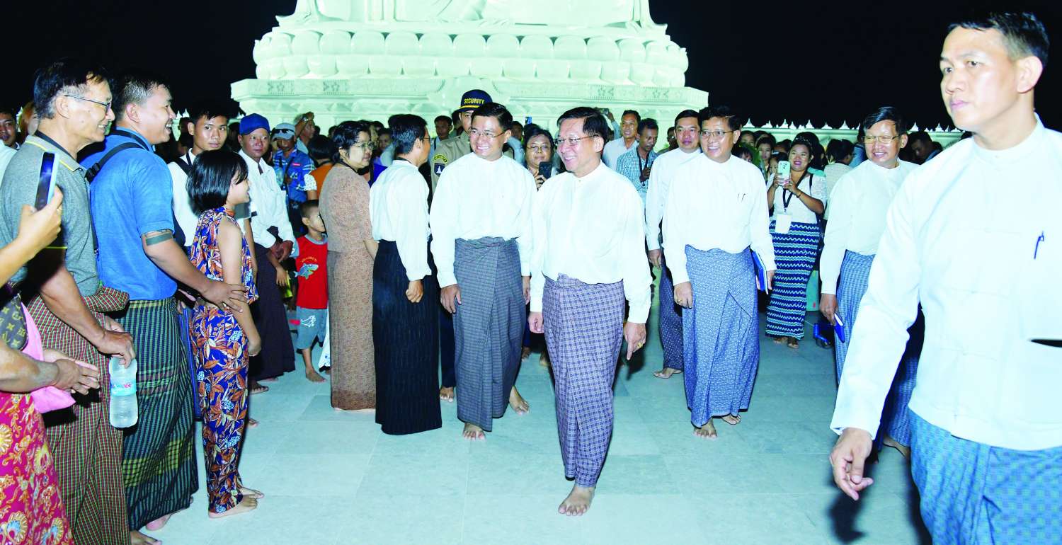 ယင်းနောက် အစည်းအဝေးအပြီးတွင် နိုင်ငံတော်စီမံအုပ်ချုပ်ရေးကောင်စီဥက္ကဋ္ဌ နိုင်ငံတော်ဝန်ကြီးချုပ်နှင့် အဖွဲ့ဝင်များသည် မာရဝိဇယဗုဒ္ဓရုပ်ပွားတော်မြတ်ကြီး ရင်ပြင်တော်ကြီးတွင်လည်းကောင်း၊ ကျောက်စာရုံတော်များအတွင်းတွင် လည်းကောင်း လှည့်လည်ဖူးမြော်ကြည်ညိုကြပြီး နိုင်ငံတော်စီမံအုပ်ချုပ်ရေးကောင်စီဥက္ကဋ္ဌ နိုင်ငံတော်ဝန်ကြီးချုပ်သည် ဘုရားဖူးလာပြည်သူများကို ခင်မင်ရင်းနှီးစွာဖြင့် ရင်းရင်းနှီးနှီးနှုတ်ဆက်ခဲ့သည်။