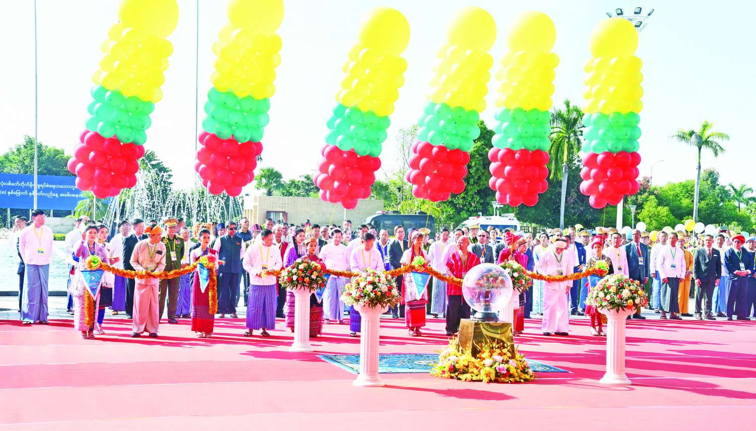 ဦးစွာ နိုင်ငံတော်စီမံအုပ်ချုပ်ရေးကောင်စီ ဒုတိယဥက္ကဋ္ဌ ဒုတိယဝန်ကြီးချုပ် ဒုတိယဗိုလ်ချုပ်မှူးကြီး စိုးဝင်း၊ နိုင်ငံတော်စီမံအုပ်ချုပ်ရေးကောင်စီအဖွဲ့ဝင်၊ ပြည်ထောင်စုဝန်ကြီး အမျိုးသားစည်းလုံးညီညွတ်ရေးနှင့် ငြိမ်းချမ်းရေးဖော်ဆောင်မှု ညှိနှိုင်းရေးကော်မတီဥက္ကဋ္ဌ ဒုတိယဗိုလ်ချုပ်ကြီး ရာပြည့်၊ တိုင်းရင်းသားခေါင်းဆောင်များဖြစ်သည့် စောမူတူးစေးဖိုး၊ ဗိုလ်ချုပ်ကြီး ယွက်စစ်နှင့် ပစ်ခတ်တိုက်ခိုက်မှု ရပ်စဲရေးဆိုင်ရာ ပူးတွဲစောင့်ကြည့်ရေးကော်မတီ (JMC) မှ ကိုယ်စားလှယ် စိုင်းမျိုးသန့်တို့က တိုင်းရင်းသားများနှင့်အတူ တစ်နိုင်ငံလုံး ပစ်ခတ်တိုက်ခိုက်မှုရပ်စဲရေးသဘောတူစာချုပ်(NCA) (၈) နှစ်မြောက်နှစ်ပတ်လည်နေ့ အခမ်းအနားကို ဖဲကြိုးဖြတ် ဖွင့်လှစ်ပေးကြသည်။