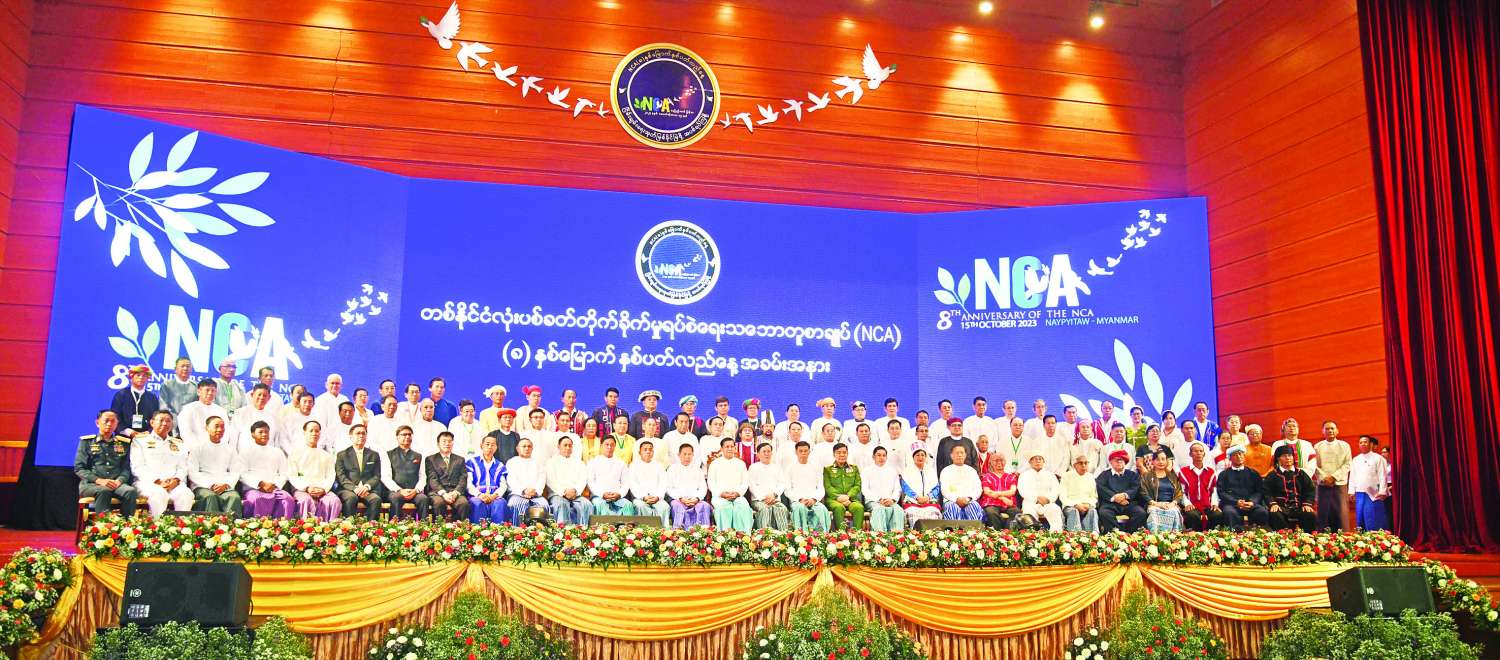 တစ်နိုင်ငံလုံးပစ်ခတ်တိုက်ခိုက်မှုရပ်စဲရေးသဘောတူစာချုပ် (NCA) ကို ၂၀၁၅ ခုနှစ် အောက်တိုဘာ ၁၅ ရက်တွင် အစိုးရ၊ လွှတ်တော်၊ တပ်မတော်နှင့် တိုင်းရင်းသားလက်နက်ကိုင်အဖွဲ့ ၈ ဖွဲ့တို့က ကုလသမဂ္ဂအပါအဝင် နိုင်ငံတကာသံတမန်များနှင့် အသိသက်သေများ၊ ပြည်တွင်းအသိသက်သေများရှေ့မှောက်တွင် လက်မှတ်ရေးထိုးခဲ့ခြင်းဖြစ်ကြောင်း၊ ၂၀၁၈ ခုနှစ် ဖေဖော်ဝါရီ ၁၃ ရက်တွင် မွန်ပြည်သစ်ပါတီနှင့် လားဟူဒီမိုကရက်တစ်အစည်းအရုံးတို့ ထပ်မံပါဝင်လက်မှတ်ရေးထိုးခဲ့ကြောင်း၊ NCA စာချုပ်သည် တစ်ဦးတစ်ယောက်တစ်ဖွဲ့တည်းက ရေးဆွဲထားခြင်းမျိုးမဟုတ်ဘဲ တိုင်းရင်းသားလက်နက်ကိုင်အဖွဲ့အစည်းများ၏ လိုလားချက်များနှင့် အဆိုပြုချက်များကိုမူတည်၍ နိုင်ငံတော်အစိုးရ၊ လွှတ်တော်၊ တပ်မတော်နှင့် တိုင်းရင်းသားလက်နက်ကိုင်အဖွဲ့အစည်းများ အကြိမ်ကြိမ်ဆွေးနွေးညှိနှိုင်း သဘောတူရေးဆွဲထားသည့် စာချုပ်တစ်ခုဖြစ်ကြောင်း၊ NCA စာချုပ်လက်မှတ်ရေးထိုးခြင်း နှစ်ပတ်လည်နေ့များကို ၄ နှစ်ဆက်တိုက်ကျင်းပနိုင်ခဲ့ပြီး ကိုဗစ်-၁၉ ရောဂါ ဖြစ်ပွားမှုကြောင့် ၂၀၂၀ ပြည့်နှစ် (၅) နှစ်မြောက် နှစ်ပတ်လည်နေ့ကို အခမ်းအနားကျင်းပနိုင်ခဲ့မှုမရှိသော်လည်း သဝဏ်လွှာများအပြန်အလှန်ပေးပို့၍ နှစ်ပတ်လည်နေ့ကို ဂုဏ်ပြုခဲ့ပါကြောင်း၊ ၂၀၂၁ ခုနှစ်နှင့် ၂၀၂၂ ခုနှစ်တွင်နှစ်ပတ်လည်နေ့များကို ပြန်လည်ကျင်းပခဲ့ပြီး နိုင်ငံတော်စီမံအုပ်ချုပ်ရေးကောင်စီဥက္ကဋ္ဌ နိုင်ငံတော်ဝန်ကြီးချုပ် အမျိုးသားစည်းလုံးညီညွတ်ရေးနှင့် ငြိမ်းချမ်းရေးဖော်ဆောင်မှု ဗဟိုကော်မတီဥက္ကဋ္ဌ၏ လမ်းညွှန်ချက်ဖြင့် ယနေ့တွင်ကျရောက်သည့် တစ်နိုင်ငံလုံးပစ်ခတ်တိုက်ခိုက်မှုရပ်စဲရေး သဘောတူစာချုပ် (NCA) (၈) နှစ်မြောက် နှစ်ပတ်လည်နေ့အခမ်းအနားအား နိုင်ငံတော်အဆင့် ခမ်းနားထည်ဝါစွာဖြင့် ကျင်းပပြုလုပ်ခဲ့ခြင်းဖြစ်ကြောင်း သတင်းရရှိသည်။