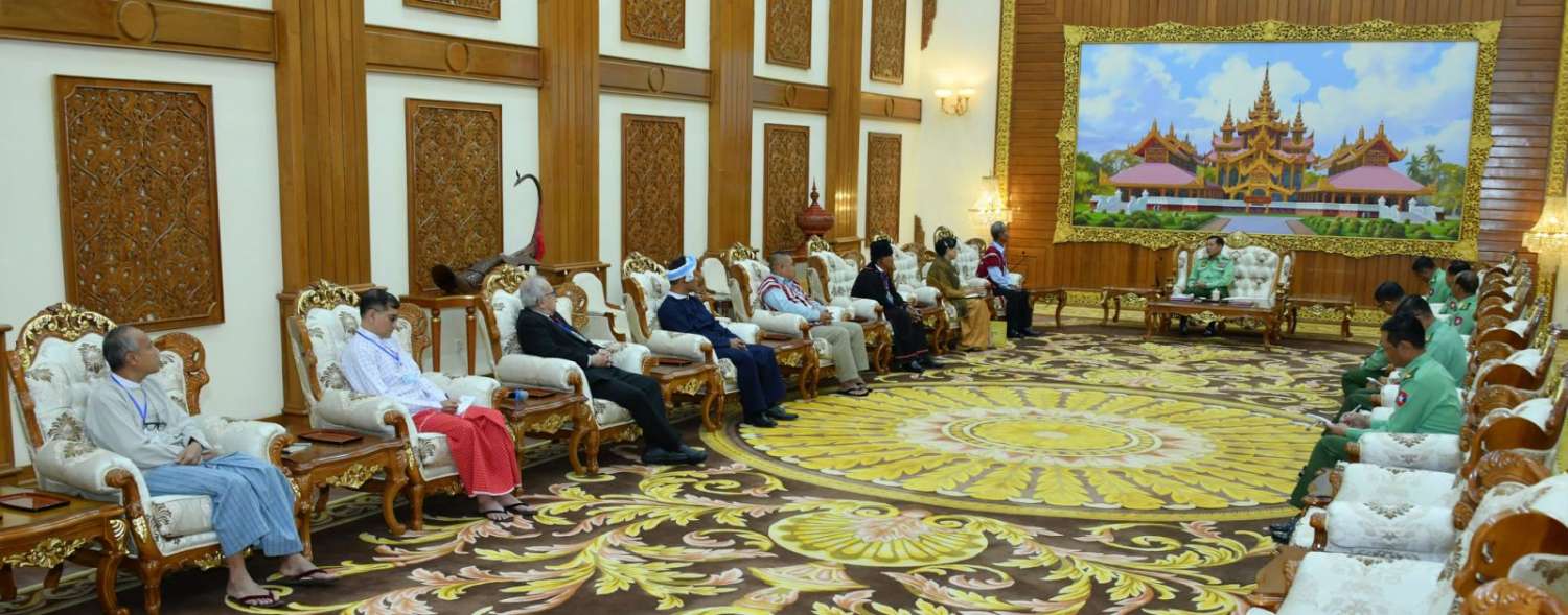 ထိုသို့ တွေ့ဆုံဆွေးနွေးရာတွင် နိုင်ငံတော်စီမံအုပ်ချုပ်ရေးကောင်စီဥက္ကဋ္ဌ တပ်မတော်ကာကွယ်ရေးဦးစီးချုပ်က တစ်နိုင်ငံလုံး ပစ်ခတ်တိုက်ခိုက်မှုရပ်စဲရေးသဘောတူစာချုပ် (NCA) (၈)နှစ်မြောက် နှစ်ပတ်လည်နေ့ အခမ်းအနားသို့တက်ရောက်ခဲ့သည့် တိုင်းရင်းသားလက်နက်ကိုင်အဖွဲ့များအနေဖြင့် ပြည်တွင်းတည်ငြိမ်အေးချမ်းရေးအတွက် လာရောက်ခဲ့ကြခြင်းဖြစ်သဖြင့် ဝမ်းမြောက်ပါကြောင်း၊ တပ်မတော်အနေဖြင့်လည်း ကြိုဆိုပါကြောင်းပြောကြားပြီး တစ်နိုင်ငံလုံးပစ်ခတ်တိုက်ခိုက်မှု ရပ်စဲရေးသဘောတူစာချုပ် (NCA)လက်မှတ်ရေးထိုးခဲ့မှုအခြေအနေများ၊ တပ်မတော်အနေဖြင့် ဒို့တာဝန်အရေးသုံးပါးနှင့် ပါတီစုံဒီမိုကရေစီစနစ်လျှောက်လှမ်းမှုကို ထိခိုက်မှုမရှိပါက တွေ့ဆုံဆွေးနွေးမှုများကို ဆောင်ရွက်သွားမည့်အခြေအနေများ၊ ၂၀၂၀ ပြည့်နှစ်ပါတီစုံဒီမိုကရေစီအထွေထွေ ရွေးကောက်ပွဲတွင် မဲမသမာမှုများဖြစ်ပေါ်ခဲ့ခြင်းကြောင့် ဖွဲ့စည်းပုံအခြေခံဥပဒေ (၂၀၀၈ ခုနှစ်)နှင့်အညီ တပ်မတော်မှ နိုင်ငံတော်တာဝန်များကိုထမ်းဆောင်ခဲ့ရမှု အခြေအနေများ၊ နိုင်ငံတော်နှင့် တပ်မတော်အနေဖြင့် NCA လမ်းကြောင်းပေါ်တွင် ဆက်လက်လျှောက်လှမ်းလျက်ရှိမှု အခြေအနေများ၊ နိုင်ငံတော်စီမံအုပ်ချုပ်ရေးကောင်စီအနေဖြင့် အမျိုးသားရေးမျှော်မှန်းချက် ၂ ရပ်ဖြစ်သည့် တိုင်းပြည်သာယာဝပြောရေးနှင့် စားရေရိက္ခာပေါများရေး၊ နိုင်ငံရေး မျှော်မှန်းချက် ၂ ရပ်ဖြစ်သည့် စစ်မှန်၍စည်းကမ်းပြည့်ဝသည့် ပါတီစုံဒီမိုကရေစီစနစ်ခိုင်မာရေးနှင့် ဒီမိုကရေစီနှင့်ဖက်ဒရယ်ကိုအခြေခံသည့် ပြည်ထောင်စုတည်ဆောက်ရေးတို့ကို အကောင်အထည်ဖော် ဆောင်ရွက်လျက်ရှိသည့် အခြေအနေများ၊ တိုင်းပြည်ကောင်းစေရန်အတွက် သက်ဆိုင်သူအားလုံးက တူညီသည့်ဆန္ဒများဖြင့်ဆောင်ရွက်ရန် လိုအပ်မှုအခြေအနေများ၊ တိုင်းပြည်တည်ငြိမ်အေးချမ်းရေးနှင့် ဒေသအလိုက်တည်ငြိမ်အေးချမ်းရေးအတွက် ဝိုင်းဝန်းဆောင်ရွက်သွားရန် လိုအပ်မှုအခြေအနေများ၊ တပ်မတော်အနေဖြင့် ပြည်တွင်းငြိမ်းချမ်းရေးလုပ်ငန်းများဆောင်ရွက်ရာတွင် စိတ်ရှည်သည်းခံစွာဖြင့် ဆောင်ရွက်လျက်ရှိမှု အခြေအနေများနှင့်ပတ်သက်၍ ဆွေးနွေး ပြောကြားသည်။