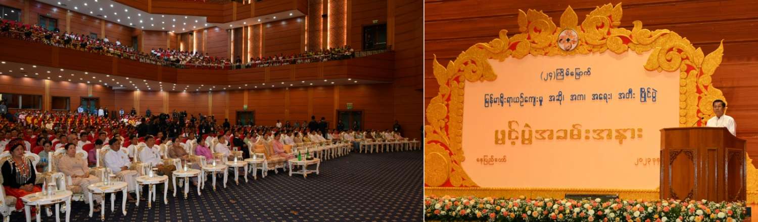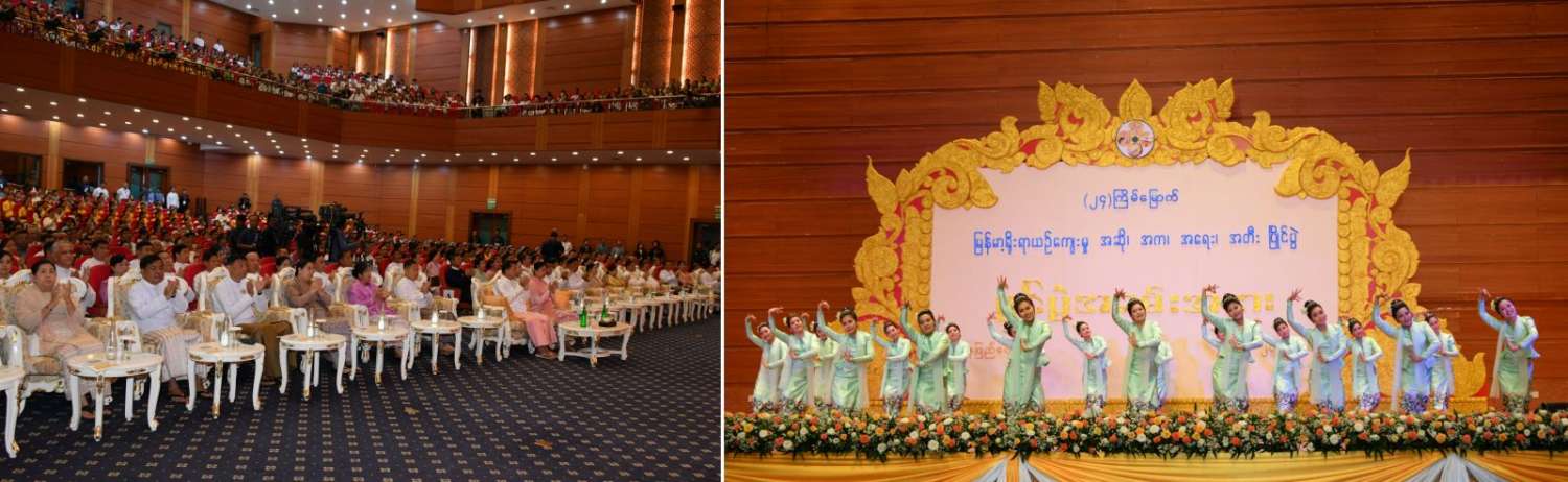 (၂၄) ကြိမ်မြောက် မြန်မာ့ရိုးရာယဉ်ကျေးမှု အဆို၊ အက၊ အရေး၊ အတီး ပြိုင်ပွဲဖွင့်ပွဲ အခမ်းအနားကို ယနေ့နံနက်ပိုင်းတွင် နေပြည်တော်ရှိ မြန်မာအပြည်ပြည်ဆိုင်ရာကွန်ဗင်းရှင်းဗဟိုဌာန (၂) (MICC-II) ၌ကျင်းပရာ နိုင်ငံတော်စီမံအုပ်ချုပ်ရေးကောင်စီဥက္ကဋ္ဌ နိုင်ငံတာ်ဝန်ကြီးချုပ် ဗိုလ်ချုပ်မှူးကြီး မင်းအောင်လှိုင် တက်ရောက်အမှာစကားပြောကြားသည်။