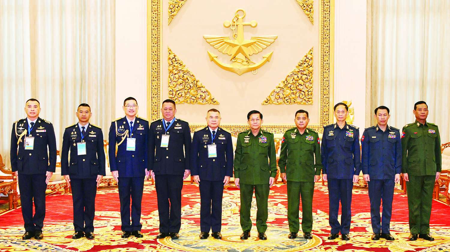 နိုင်ငံတော်စီမံအုပ်ချုပ်ရေးကောင်စီဥက္ကဋ္ဌ တပ်မတော်ကာကွယ်ရေးဦးစီးချုပ် ဗိုလ်ချုပ်မှူးကြီး မင်းအောင်လှိုင် ထိုင်းဘုရင့်လေတပ်ဦးစီးချုပ် ဦးဆောင်သည့် ကိုယ်စားလှယ်အဖွဲ့အား လက်ခံတွေ့ဆုံ