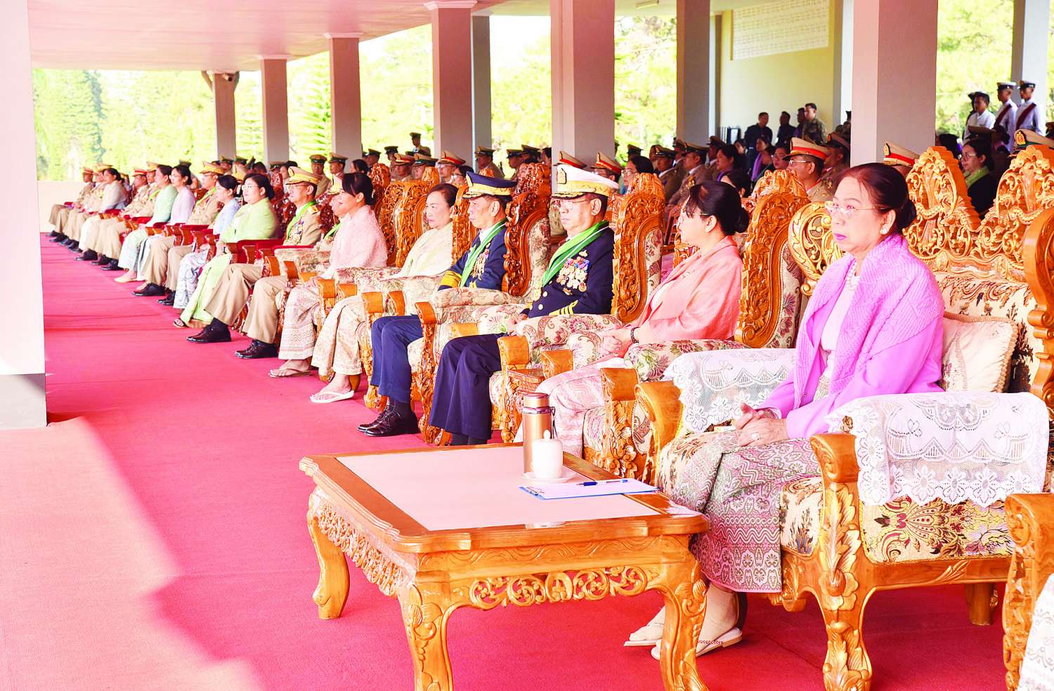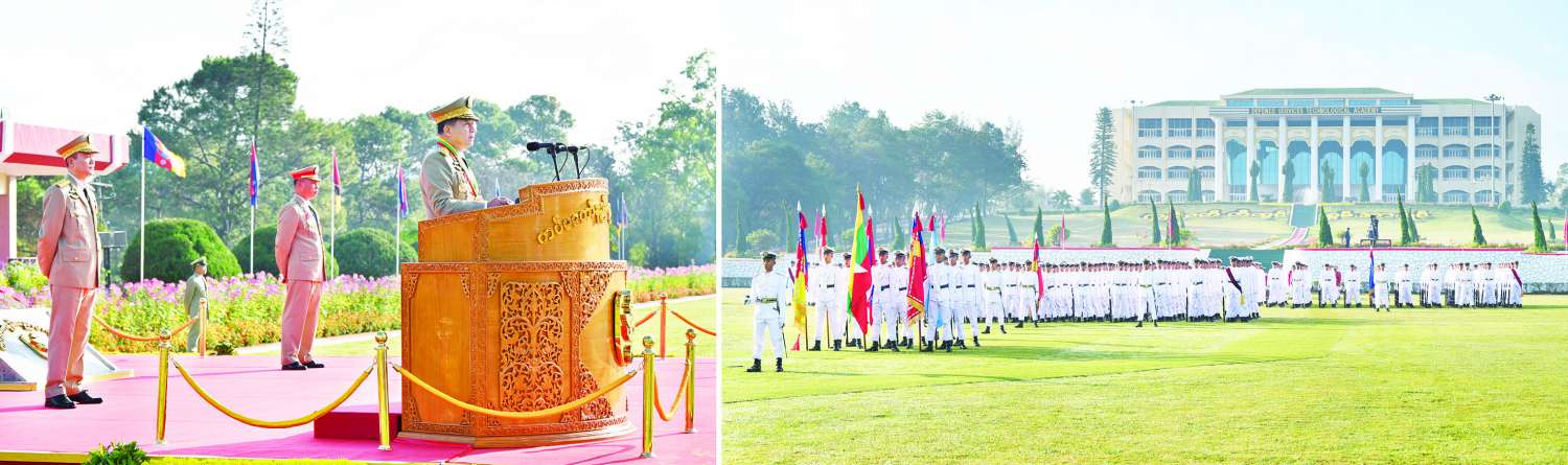 တပ်မတော်နည်းပညာတက္ကသိုလ် ဗိုလ်လောင်းသင်တန်းအမှတ်စဉ်(၂၅) သင်တန်းဆင်း ဂုဏ်ပြုစစ်ရေးပြအခမ်းအနားကို ယနေ့နံနက်ပိုင်းတွင် ပြင်ဦးလွင်မြို့ တပ်မတော်နည်းပညာတက္ကသိုလ် စစ်ရေးပြကွင်း၌ ကျင်းပပြုလုပ်ရာ နိုင်ငံတော်စီမံအုပ်ချုပ်ရေးကောင်စီဥက္ကဋ္ဌ တပ်မတော်ကာကွယ်ရေးဦးစီးချုပ် ဗိုလ်ချုပ်မှူးကြီး သတိုးမဟာသရေစည်သူ သတိုးသီရိသုဓမ္မ မင်းအောင်လှိုင် တက်ရောက်မိန့်ခွန်း ပြောကြားသည်။