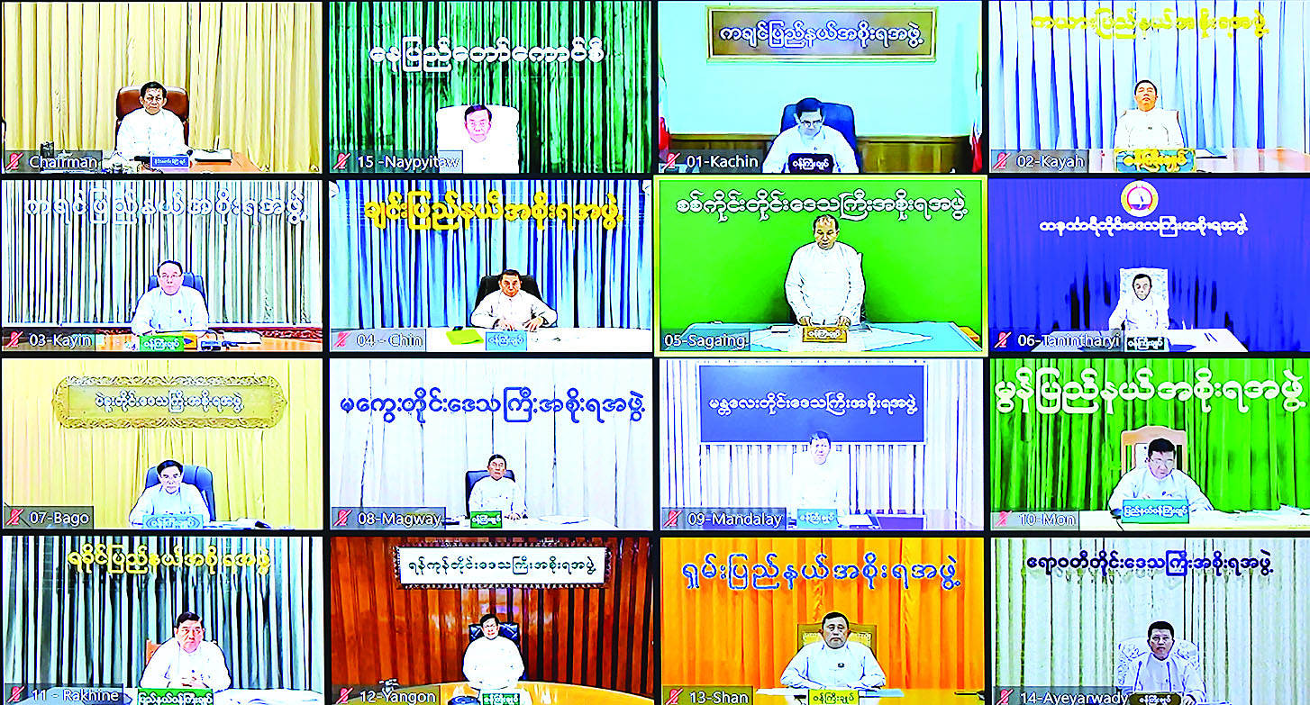 ထို့နောက် နေပြည်တော်ကောင်စီ ဥက္ကဋ္ဌ၊ တိုင်းဒေသကြီးနှင့် ပြည်နယ်ဝန်ကြီးချုပ်များက တင်ပြကြသည်။