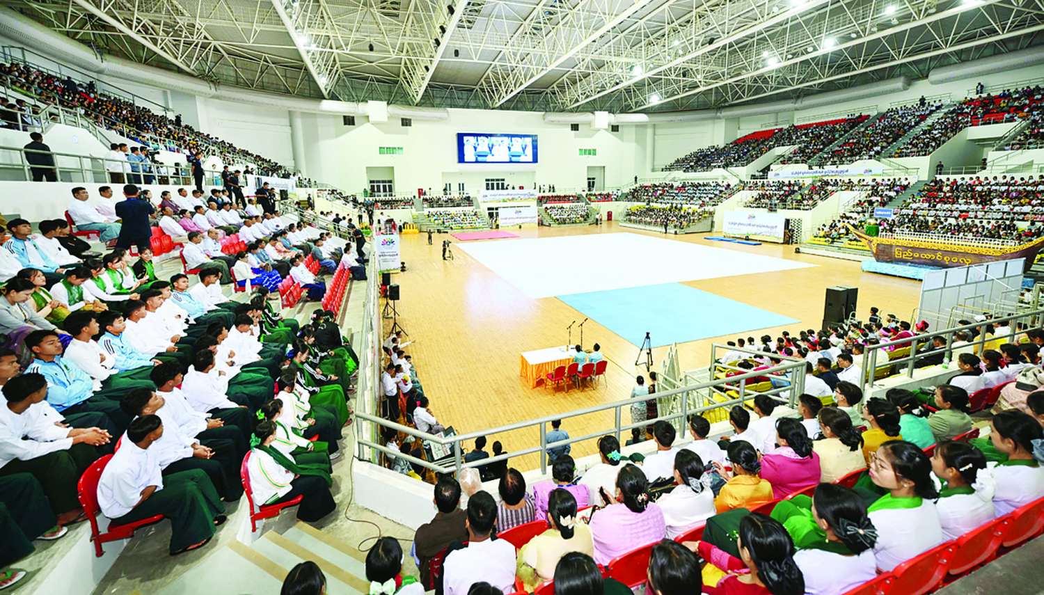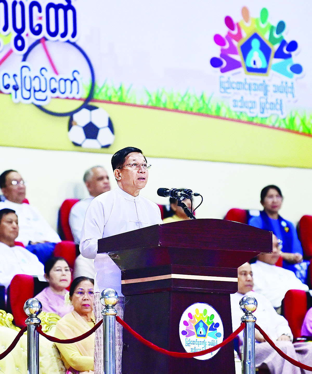 (၇၆) နှစ်မြောက် လွတ်လပ်ရေးနေ့အထိမ်းအမှတ် လူငယ်နှင့် စာပေအနုပညာပွဲတော် ဖွင့်ပွဲအခမ်းအနားကို ယနေ့နံနက်ပိုင်းတွင် နေပြည်တော်ရှိ ဝဏ္ဏသိဒ္ဓိအားကစားကွင်း (B) ရုံ၌ကျင်းပရာ နိုင်ငံတော်စီမံအုပ်ချုပ်ရေးကောင်စီဥက္ကဋ္ဌ နိုင်ငံတော်ဝန်ကြီးချုပ် ဗိုလ်ချုပ်မှူးကြီး မင်းအောင်လှိုင် တက်ရောက်ဖွင့်လှစ်ပေးပြီး အမှာစကားပြောကြားသည်။