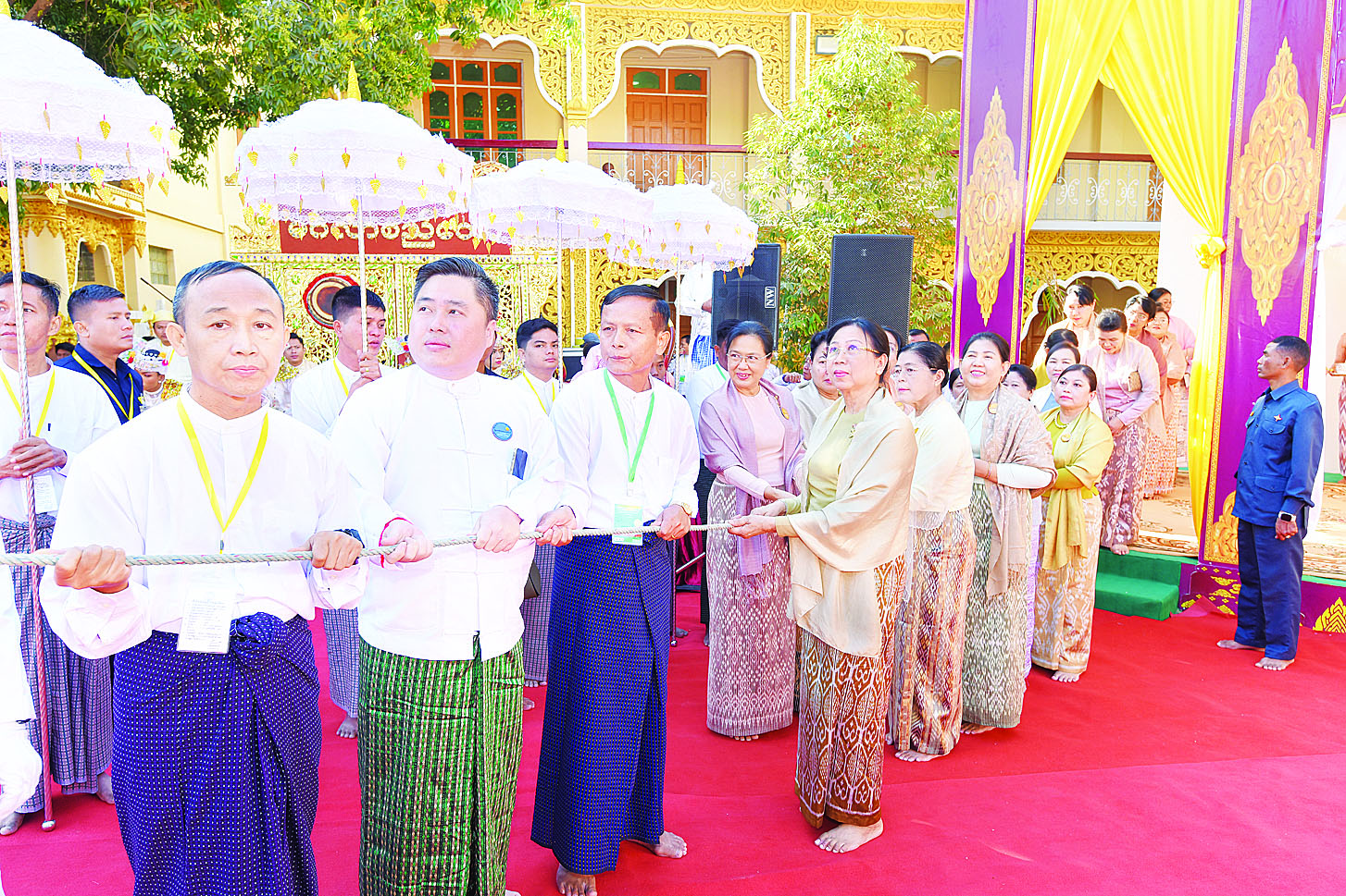 အဆိုပါ အခမ်းအနားသို့ နိုင်ငံတော်စီမံအုပ်ချုပ်ရေးကောင်စီဥက္ကဋ္ဌ နိုင်ငံတော်ဝန်ကြီးချုပ် ဗိုလ်ချုပ်မှူးကြီး မင်းအောင်လှိုင်နှင့် ဇနီးဒေါ်ကြူကြူလှ၊ ကောင်စီတွဲဖက်အတွင်းရေးမှူး ဒုတိယဗိုလ်ချုပ်ကြီး ရဲဝင်းဦးနှင့်ဇနီး၊ ကောင်စီဝင်များနှင့်ဇနီးများ၊ ပြည်ထောင်စုအဆင့်ပုဂ္ဂိုလ်များ၊ ပြည်ထောင်စုဝန်ကြီးများနှင့် ဇနီးများ၊ နေပြည်တော်ကောင်စီဥက္ကဋ္ဌနှင့် ဇနီး၊ ကာကွယ်ရေးဦးစီးချုပ်ရုံးမှ အဆင့်မြင့် တပ်မတော်အရာရှိကြီးများနှင့် ဇနီးများ၊ နေပြည်တော် တိုင်းစစ်ဌာနချုပ်တိုင်းမှူး၊ အလှူရှင်များနှင့် ဖိတ်ကြားထားသည့် ဧည့်သည်တော်များ၊ ဝတ်အသင်းအဖွဲ့များနှင့် ဒေသခံပြည်သူများ တက်ရောက်ကြသည်။