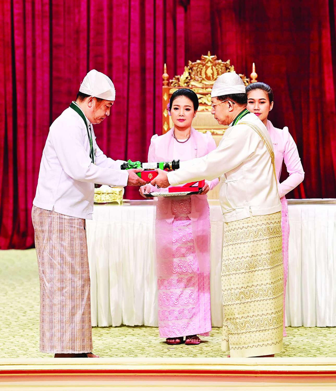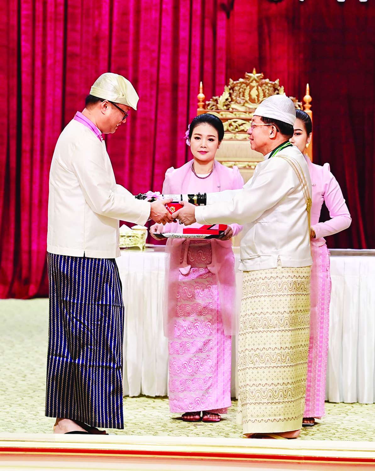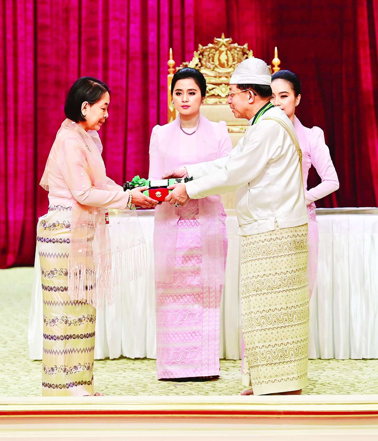 အခမ်းအနားသို့ နိုင်ငံတော်စီမံအုပ်ချုပ်ရေးကောင်စီဥက္ကဋ္ဌ နိုင်ငံတော်ဝန်ကြီးချုပ်၏ဇနီး ဒေါ်ကြူကြူလှ၊ နိုင်ငံတော်စီမံ အုပ်ချုပ်ရေးကောင်စီ ဒုတိယဥက္ကဋ္ဌ ဒုတိယဝန်ကြီးချုပ် ဒုတိယဗိုလ်ချုပ်မှူးကြီး သီရိပျံချီ မဟာသရေစည်သူ စိုးဝင်းနှင့်ဇနီး ဒေါ်သန်းသန်းနွယ်၊ ကောင်စီအတွင်းရေးမှူးနှင့်ဇနီး၊ တွဲဖက်အတွင်းရေးမှူးနှင့်ဇနီး၊ နိုင်ငံတော်စီမံအုပ်ချုပ်ရေး ကောင်စီဝင်များနှင့်ဇနီးများ၊ ပြည်ထောင်စုအဆင့် ပုဂ္ဂိုလ်များ၊ ပြည်ထောင်စုဝန်ကြီးများနှင့်ဇနီးများ၊ ကာကွယ်ရေးဦးစီးချုပ်ရုံးမှ အဆင့်မြင့် တပ်မတော်အရာရှိကြီးများ၊ ဂုဏ်ထူးဆောင်ဘွဲ့ ရရှိကြသည့် ပုဂ္ဂိုလ်များနှင့်မိသားစုဝင်များ တက်ရောက်ကြသည်။