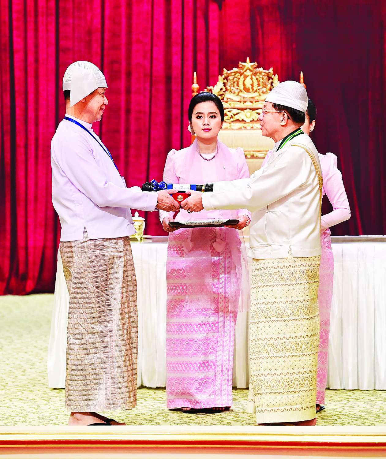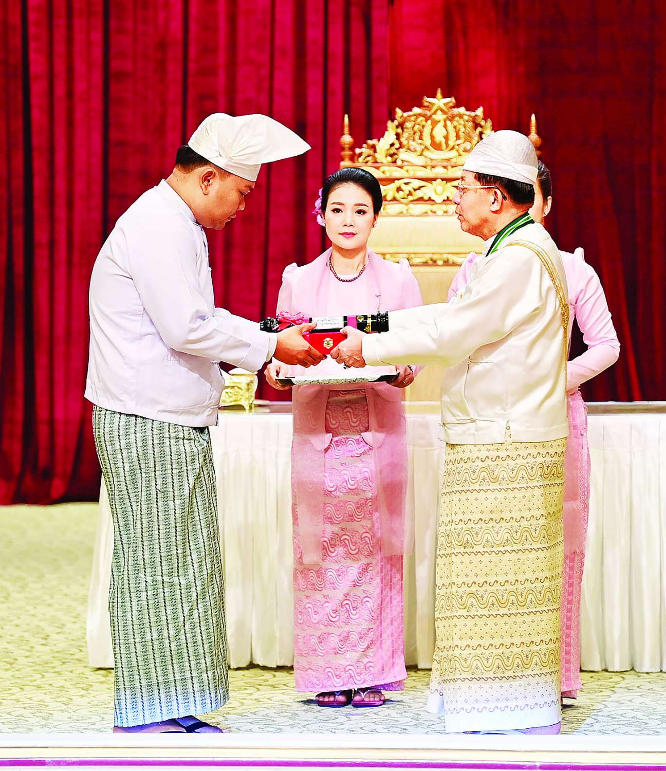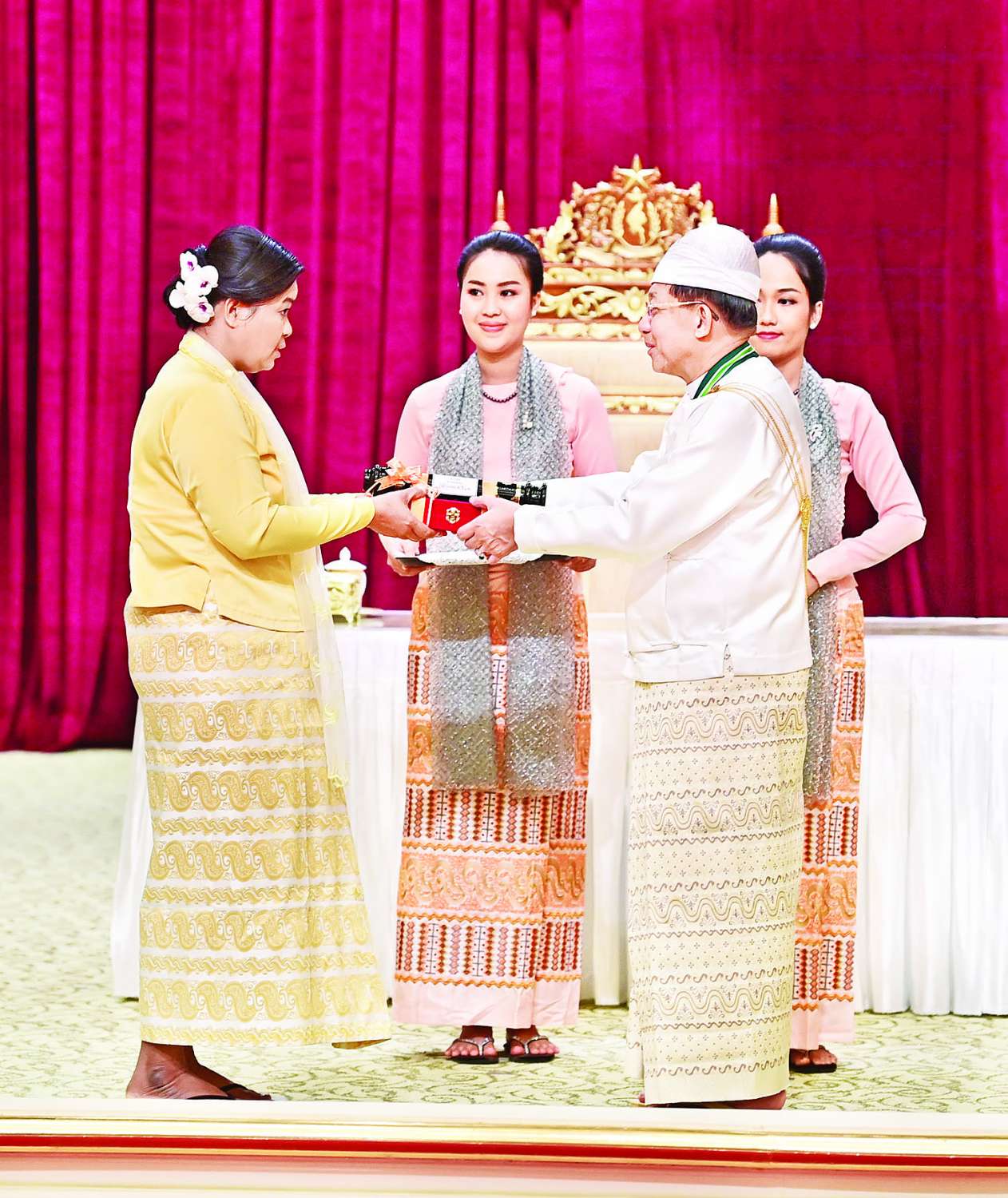 အခမ်းအနားသို့ နိုင်ငံတော်စီမံအုပ်ချုပ်ရေးကောင်စီဥက္ကဋ္ဌ နိုင်ငံတော်ဝန်ကြီးချုပ်၏ဇနီး ဒေါ်ကြူကြူလှ၊ နိုင်ငံတော်စီမံ အုပ်ချုပ်ရေးကောင်စီ ဒုတိယဥက္ကဋ္ဌ ဒုတိယဝန်ကြီးချုပ် ဒုတိယဗိုလ်ချုပ်မှူးကြီး သီရိပျံချီ မဟာသရေစည်သူ စိုးဝင်းနှင့်ဇနီး ဒေါ်သန်းသန်းနွယ်၊ ကောင်စီအတွင်းရေးမှူးနှင့်ဇနီး၊ တွဲဖက်အတွင်းရေးမှူးနှင့်ဇနီး၊ နိုင်ငံတော်စီမံအုပ်ချုပ်ရေး ကောင်စီဝင်များနှင့်ဇနီးများ၊ ပြည်ထောင်စုအဆင့် ပုဂ္ဂိုလ်များ၊ ပြည်ထောင်စုဝန်ကြီးများနှင့်ဇနီးများ၊ ကာကွယ်ရေးဦးစီးချုပ်ရုံးမှ အဆင့်မြင့် တပ်မတော်အရာရှိကြီးများ၊ ဂုဏ်ထူးဆောင်ဘွဲ့ ရရှိကြသည့် ပုဂ္ဂိုလ်များနှင့်မိသားစုဝင်များ တက်ရောက်ကြသည်။