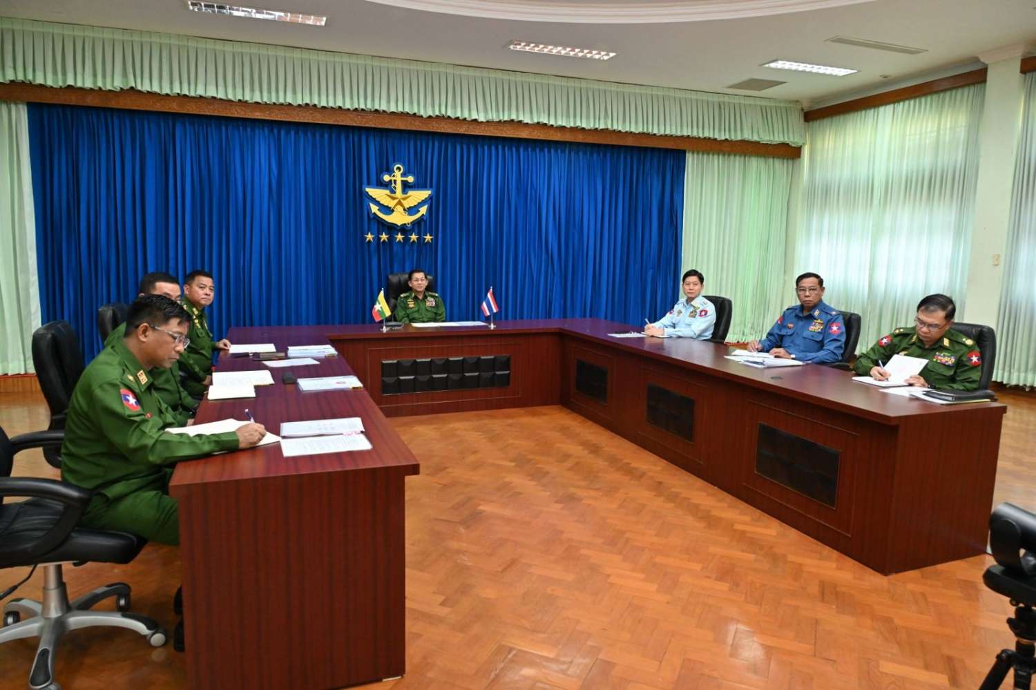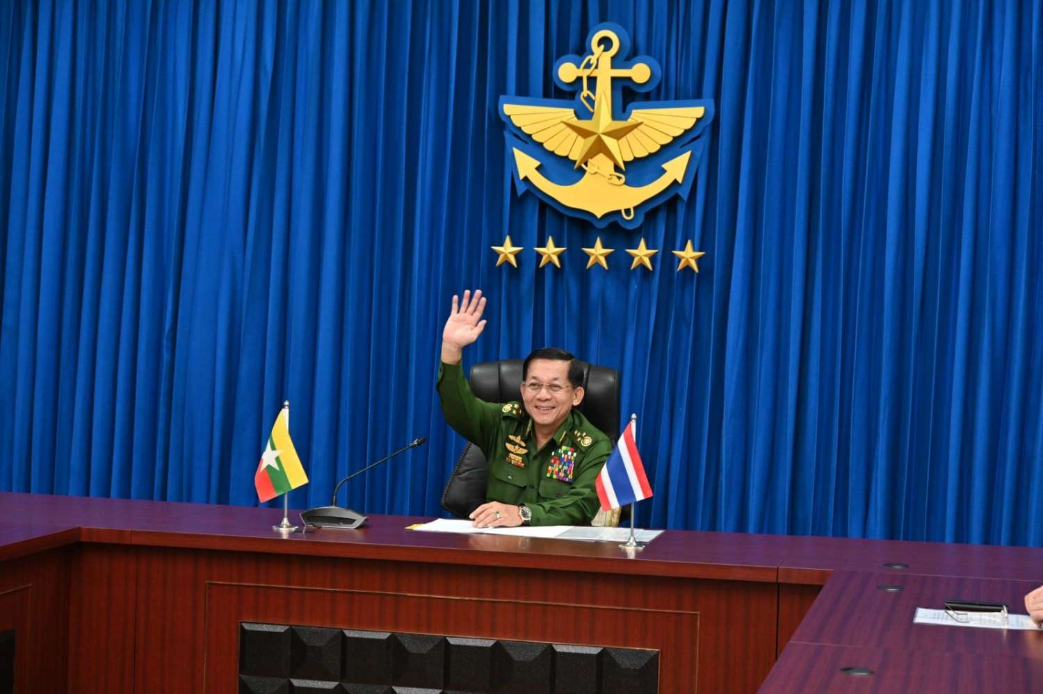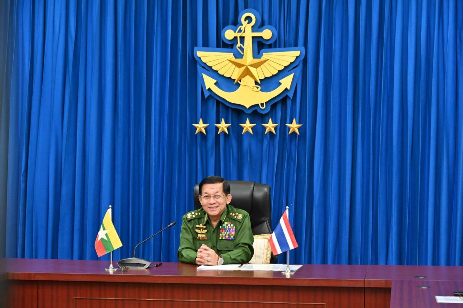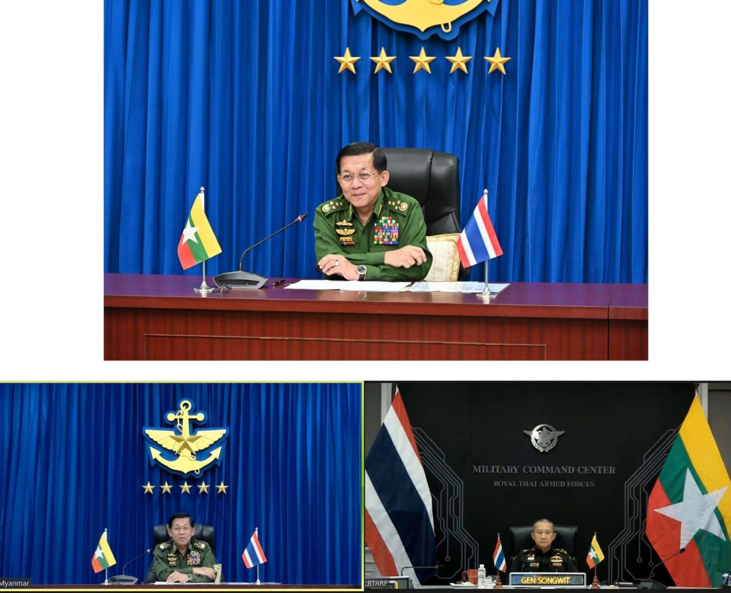 နိုင်ငံတော်စီမံအုပ်ချုပ်ရေးကောင်စီဥက္ကဋ္ဌ တပ်မတော်ကာကွယ်ရေးဦးစီးချုပ် ဗိုလ်ချုပ်မှူးကြီး မင်းအောင်လှိုင်နှင့် ထိုင်းဘုရင့်တပ်မတော်ကာကွယ်ရေးဦးစီးချုပ် General Songwit Noonpackdee တို့ Video Conferencing ဖြင့် တွေ့ဆုံဆွေးနွေး