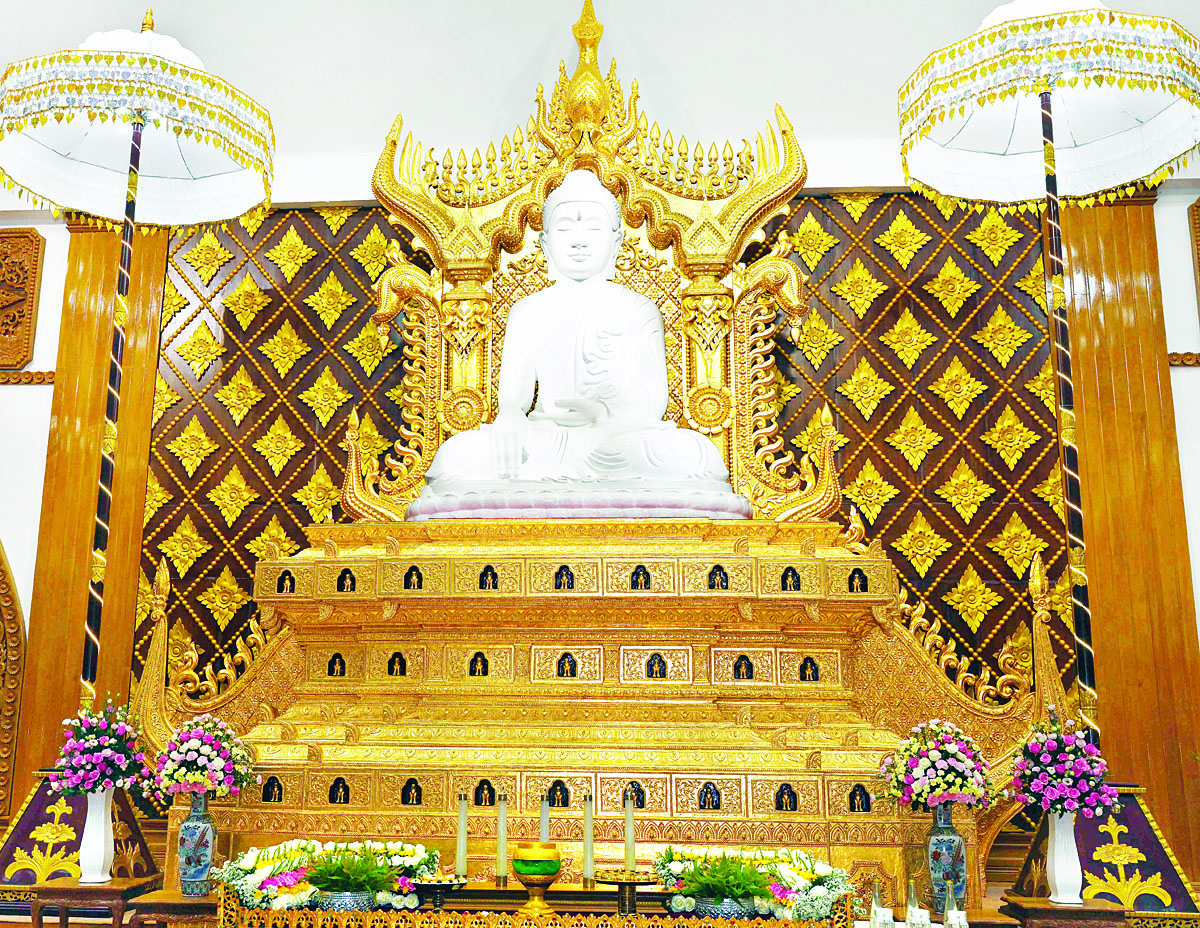 ထို့နောက် အခမ်းအနားကို “နမောတဿ” သုံးကြိမ်ရွတ်ဆို ဘုရားကန်တော့ ဖွင့်လှစ်၍ နိုင်ငံတော်စီမံအုပ်ချုပ်ရေးကောင်စီဥက္ကဋ္ဌ နိုင်ငံတော်ဝန်ကြီးချုပ်နှင့် ဇနီး အမှူးပြုသော ဧည့်ပရိသတ်များက နိုင်ငံတော်သံဃမဟာ နာယကအဖွဲ့ဥက္ကဋ္ဌ သန်လျင် မင်းကျောင်းဆရာတော် ဘုရားကြီးထံမှ ငါးပါးသီလခံယူ ဆောက်တည်ကြပြီး သံဃာတော်အရှင်သူမြတ်များ ရွတ်ပွားသရဇ္ဈာယ်တော်မူသော မေတ္တသုတ် ပရိတ်တရားတော်များကို နာယူကြည်ညိုကြသည်။
