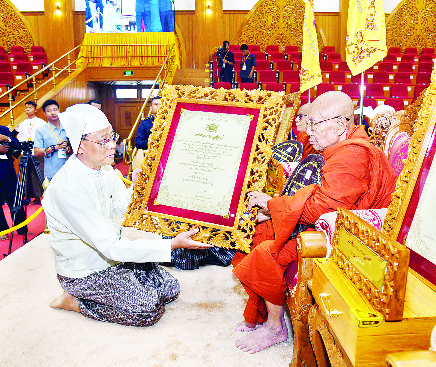 နိုင်ငံတော်စီမံအုပ်ချုပ်ရေးကောင်စီအနေဖြင့် ၂၀၂၄ ခုနှစ်တွင် ပြည်တွင်း/ ပြည်ပဆရာတော်၊ သံဃာတော် ၄၂၁ ပါး၊ သီလရှင်ဆရာကြီး ၄၁ ပါးနှင့် လူပုဂ္ဂိုလ် ၄၇ ဦးတို့ကို သာသာနာတော်ဆိုင်ရာဘွဲ့တံဆိပ်များ ဆက်ကပ်လှူဒါန်းချီးမြှင့်ခဲ့ပြီး ယနေ့ကျင်းပသည့် ၂၀၂၄ ခုနှစ် သာသနာတော်ဆိုင်ရာ ဘွဲ့တံဆိပ်တော် ဆက်ကပ်ပူဇော်ပွဲအခမ်းအနားတွင် အဘိဓဇ မဟာရဋ္ဌဂုရုဘွဲ့တံဆိပ်တော်ရဆရာတော်ကြီး ၅ ပါး၊ အဘိဓဇအဂ္ဂမဟာသဒ္ဓမ္မဇောတိက ဘွဲ့တံဆိပ်တော်ရ ဆရာတော်ကြီး ၆ ပါး၊ အဂ္ဂမဟာပဏ္ဍိတဘွဲ့တံဆိပ်တော်ရဆရာတော်ကြီး ၂၁ ပါး၊ အဂ္ဂမဟာသဒ္ဓမ္မ ဇောတိကဓဇ ဘွဲ့တံဆိပ်တော်ရ ဆရာတော်ကြီး ၄၅ ပါး၊ အဂ္ဂမဟာဂန္ထ ဝါစကပဏ္ဍိတ ဘွဲ့တံဆိပ်တော်ရ ဆရာတော်ကြီး ၂၃ ပါး၊ အဂ္ဂမဟာ ကမ္မဋ္ဌာနာစရိယ ဘွဲ့တံဆိပ်တော်ရ ဆရာတော်ကြီး ၈ ပါးနှင့် အဂ္ဂမဟာဂန္ထ ဝါစကပဏ္ဍိတ ဘွဲ့တံဆိပ်တော်ရ သီလရှင်ဆရာကြီး ၂ ပါးတို့အား ဘွဲ့တံဆိပ်တော်နှင့် လှူဖွယ်ပစ္စည်းများ ဆက်ကပ်ပူဇော်ခဲ့ပြီး သာသနာနုဂ္ဂဟဘွဲ့တံဆိပ်ရရှိကြသည့် လူပုဂ္ဂိုလ် ၁၂ ဦးတို့ကို ဘွဲ့တံဆိပ်နှင့် အဆောင်အယောင်များကို ချီးမြှင့်အပ်နှင်းခဲ့သည်။ ကျန်ရှိသည့် ဘွဲ့ခံဆရာတော်ကြီးများ၊ သီလရှင်ဆရာကြီးများနှင့် လူပုဂ္ဂိုလ်များကိုလည်း သက်ဆိုင်ရာ နေပြည်တော်ကောင်စီနယ်မြေ၊ တိုင်းဒေသကြီးနှင့် ပြည်နယ်များအလိုက် ဝန်ကြီးချုပ်များနှင့် တာဝန်ရှိသူများက အသီးသီးဆက်ကပ်ပေးအပ်ချီးမြှင့်ခဲ့ကြကြောင်း သိရှိရသည်။