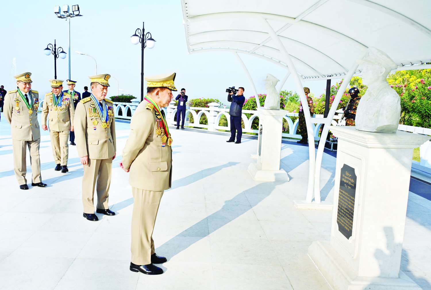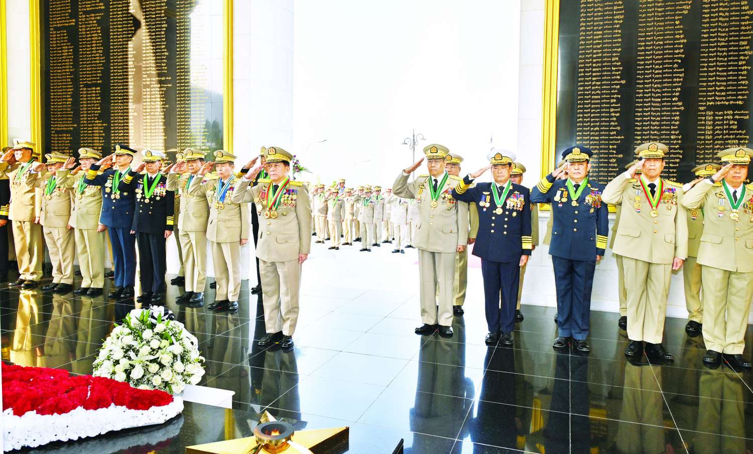 ယနေ့တွင် ကျရောက်သည့် (၇၉) နှစ်မြောက် တပ်မတော်နေ့ အထိမ်းအမှတ်အဖြစ် ယနေ့နံနက်ပိုင်းတွင် သူရဲကောင်းဗိမာန်(နေပြည်တော်)၌ ဂုဏ်ပြုပန်းခြင်းချအလေးပြုခြင်း အခမ်းအနားကို ကျင်းပပြုလုပ်ရာ နိုင်ငံတော်စီမံအုပ်ချုပ်ရေးကောင်စီဥက္ကဋ္ဌ တပ်မတော်ကာကွယ်ရေးဦးစီးချုပ် ဗိုလ်ချုပ်မှူးကြီး သတိုးမဟာသရေစည်သူ သတိုးသီရိသုဓမ္မ မင်းအောင်လှိုင် တက်ရောက်၍ ဂုဏ်ပြုပန်းခြင်းချအလေးပြုသည်။