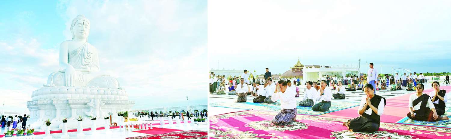 ဦးစွာ နိုင်ငံတော်စီမံအုပ်ချုပ်ရေးကောင်စီဥက္ကဋ္ဌ နိုင်ငံတော်ဝန်ကြီးချုပ်နှင့်ဇနီးတို့သည် မာရဝိဇယဗုဒ္ဓရုပ်ပွားတော်မြတ်ကြီအား ပန်း၊ ရေချမ်းနှင့် ဆီမီးများ ကပ်လှူပူဇော်ပြီး ဖူးမြော်ကြည်ညိုကြသည်။