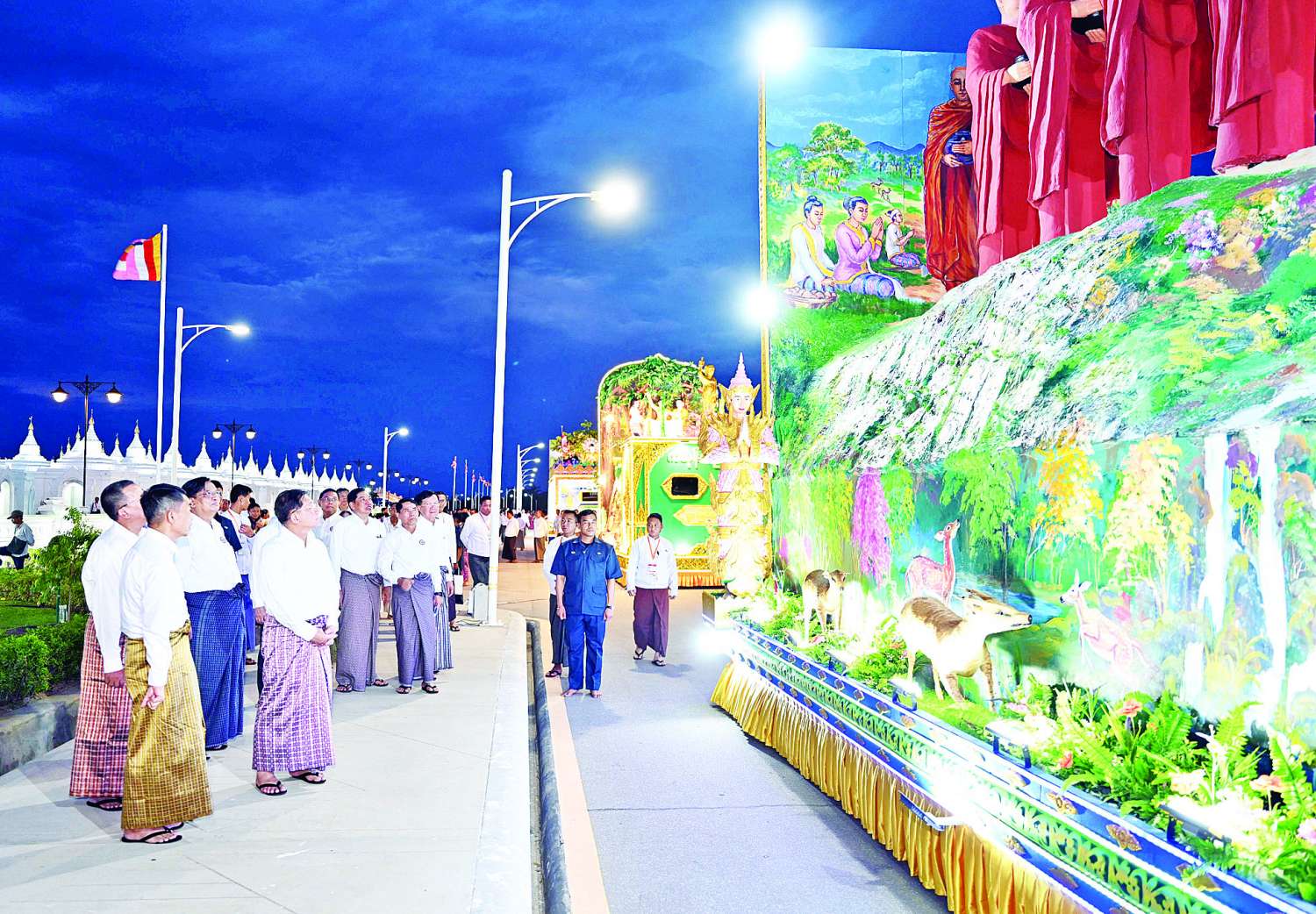 ထို့နောက် နိုင်ငံတော်စီမံအုပ်ချုပ်ရေးကောင်စီဥက္ကဋ္ဌ နိုင်ငံတော်ဝန်ကြီးချုပ်နှင့်ဇနီးတို့သည် ဘုရားဖူးလာပြည်သူများအား ရင်းရင်းနှီးနှီးနှုတ်ဆက်ကြပြီး ကဆုန်လပြည့် ဗုဒ္ဓနေ့သရုပ်ပြယာဉ်များကို လှည့်လည်ကြည့်ရှုခဲ့ကြသည်။
