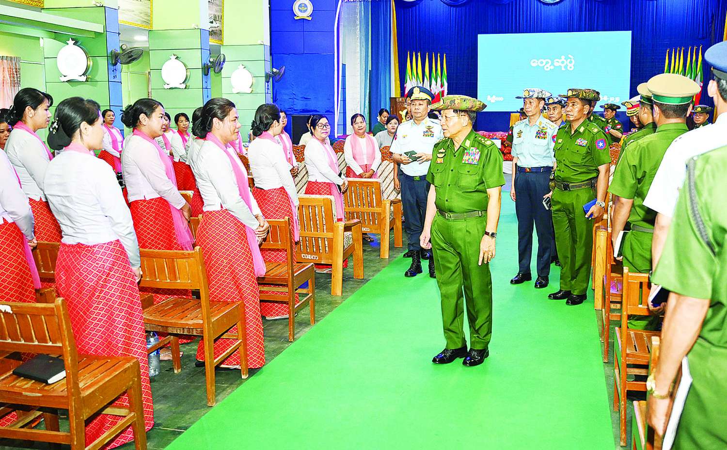 တွေ့ဆုံပွဲအပြီးတွင် နိုင်ငံတော်စီမံအုပ်ချုပ်ရေးကောင်စီဥက္ကဋ္ဌ တပ်မတော်ကာကွယ်ရေးဦးစီးချုပ်နှင့် ဇနီး၊ အဖွဲ့ဝင်များသည် တက်ရောက်လာကြသည့် အရာရှိ၊ စစ်သည် မိသားစုများအား ရင်းရင်းနှီးနှီး လိုက်လံနှုတ်ဆက်ခဲ့ကြသည်။