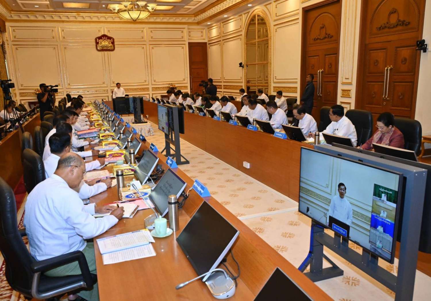ပြည်ထောင်စုအစိုးရအဖွဲ့အစည်းအဝေး အမှတ်စဉ် (၅/၂၀၂၄) ကို ယနေ့နံနက်ပိုင်းတွင် နေပြည်တော်ရှိ နိုင်ငံတော်စီမံအုပ်ချုပ်ရေးကောင်စီဥက္ကဋ္ဌရုံး အစည်းအဝေးခန်းမ၌ ကျင်းပရာ နိုင်ငံတော်စီမံအုပ်ချုပ်ရေးကောင်စီဥက္ကဋ္ဌ နိုင်ငံတော်ဝန်ကြီးချုပ် ဗိုလ်ချုပ်မှူးကြီး မင်းအောင်လှိုင် တက်ရောက်အမှာစကားပြောကြားသည်။