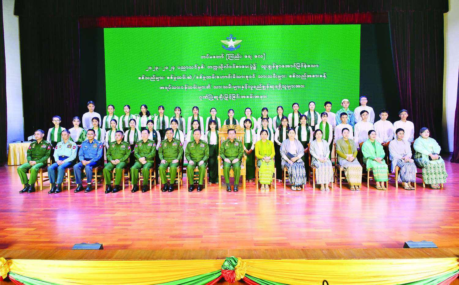 ၂၀၂၃-၂၀၂၄ ပညာသင်နှစ်၊ တက္ကသိုလ်ဝင်စာမေးပွဲ၌ ထူးချွန်စွာအောင်မြင်ခဲ့သည့် တပ်မတော် (ကြည်း၊ ရေ၊ လေ)မှ စစ်သည်များ၊ စစ်မှုထမ်းဆဲ၊ စစ်မှုထမ်းဟောင်း မိသားစုဝင်သားသမီးများ၊ စစ်သည်အစားခန့်အရပ်သားဝန်ထမ်းများ၏ သားသမီးများနှင့် လူရည်ချွန်ဆုရရှိသော ကျောင်းသား၊ ကျောင်းသူများအား ဂုဏ်ပြုဆုချီးမြှင့်ခြင်း အခမ်းအနားကို ယနေ့မွန်းလွဲပိုင်းတွင် နေပြည်တော်ရှိ ဇေယျာသီရိဗိမာန်၌ကျင်းပပြုလုပ်ရာ နိုင်ငံတော်စီမံအုပ်ချုပ်ရေးကောင်စီဥက္ကဋ္ဌ တပ်မတော်ကာကွယ်ရေးဦးစီးချုပ် ဗိုလ်ချုပ်မှူးကြီးမင်းအောင်လှိုင် တက်ရောက်ဂုဏ်ပြုအမှာစကားပြောကြားပြီး ဂုဏ်ပြုဆုများ ပေးအပ်ချီးမြှင့်သည်။