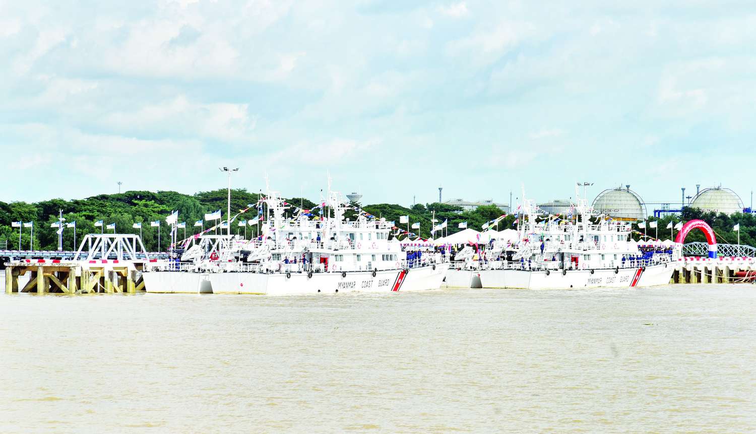 ၎င်းနောက် ကမ်းခြေစောင့်တပ်ဖွဲ့ကွပ်ကဲမှုဌာနချုပ် ကြီးကြပ်ရေးမှူးချုပ် ဗိုလ်မှူးကြီးကျော်ကျော်လင်းက အမြန်သွားကင်းလှည့်ရေယာဉ်(၄)စီးအား တပ်တော်ဝင်ရေယာဉ်များအဖြစ်ကြေညာခြင်း၊ နိုင်ငံတော်အလံလွှင့်တင်ခြင်း၊ ကမ်းခြေစောင့်တပ်ဖွဲ့အလံလွှင့်တင်ခြင်း၊ တပ်တော်ဝင်အလံလွှင့်တင်ခြင်း၊ ခေါင်းလောင်း(၈)ချက်တီးခြင်းနှင့် တပ်တော်ဝင်လုပ်ငန်းစဉ်များအား အစီအစဉ်အတိုင်း ဆောင်ရွက်ကြသည်။