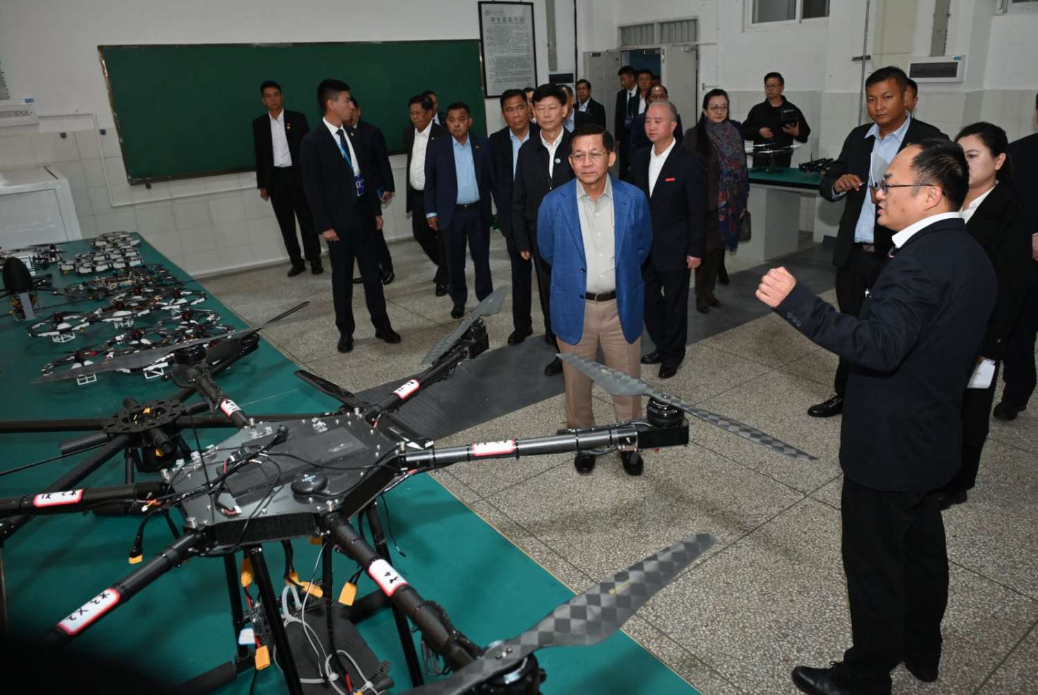 ဆက်လက်ပြီး နိုင်ငံတော်စီမံအုပ်ချုပ်ရေးကောင်စီဥက္ကဋ္ဌ နိုင်ငံတော်ဝန်ကြီးချုပ်နှင့် အဖွဲ့ဝင်များသည် တက္ကသိုလ်အတွင်းရှိ UAV နှင့် Drone နည်းပညာအသုံးပြု လယ်ယာစိုက်ပျိုးရေး၊ ဆောက်လုပ်ရေးနှင့် ကင်းထောက်နိုင်မှုစွမ်းရည်များအား သင်ကြားပို့ချမှုဌာန၊ လူသားအစားထိုးအဆင့်မြင့်စက်ရုပ်နည်းပညာ၊ အာရုံခံစနစ်အသုံးပြုမှုနည်းပညာအသုံးချမှုစနစ်အား သင်ကြားပို့ချမှုဌာနတို့သို့ လေ့လာကြည့်ရှုကြရာ တာဝန်ရှိသူများက လိုက်လံရှင်းလင်းပြသကြပြီး နိုင်ငံတော်စီမံအုပ်ချုပ်ရေးကောင်စီဥက္ကဋ္ဌ နိုင်ငံတော်ဝန်ကြီးချုပ်က သိရှိလိုသည်များ ပြန်လည်မေးမြန်းဆွေးနွေးသည်။