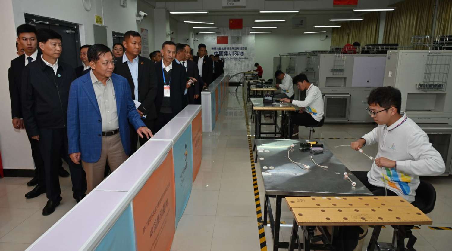 ထို့နောက် နိုင်ငံတော်စီမံအုပ်ချုပ်ရေးကောင်စီဥက္ကဋ္ဌ နိုင်ငံတော်ဝန်ကြီးချုပ်နှင့် အဖွဲ့ဝင်များသည် ကောလိပ်အတွင်းရှိ Electromechnical Training Centre အတွင်း ကမ္ဘာ့အဆင့်အတတ်ပညာဆိုင်ရာ ပြိုင်ပွဲများ၊ ပြပွဲများတွင် ဝင်ရောက်ယှဉ်ပြိုင်ခဲ့ကြသည့် နည်းပညာရပ်ဆိုင်ရာများ၊ ပြိုင်ပွဲများတွင် ဆုရရှိခဲ့သည့် အဆင့်မြင့်နည်းပညာအသုံးပြု စက်ကိရိယာများ ခင်းကျင်းပြသထားရှိမှု၊ China's Training Base For Worldskills Competition Information Network Cabling အတွင်း ကေဘယ်ဆိုင်ရာ လေ့ကျင့်ဆောင်ရွက်နေမှုများကို လှည့်လည်ကြည့်ရှုအားပေးပြီး သိရှိလိုသည်များကို မေးမြန်းဆွေးနွေးရာ တာဝန်ရှိသူများက လိုက်လံရှင်းလင်းပြသကြသည်။