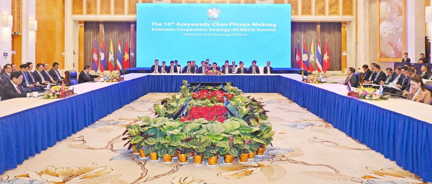 (၁၀) ကြိမ်မြောက် ဧရာဝတီ- ကျောက်ဖရား- မဲခေါင် စီးပွားရေးပူးပေါင်း ဆောင်ရွက်မှု မဟာဗျူဟာ (အက်မက်စ်) ထိပ်သီးအစည်းအဝေး (10th Ayeyawady- Chao Phraya-Mekong Economic Cooperation Strategy (ACMECS)) ကို မဲခေါင်နိုင်ငံများ၏ နယ်စပ်ဒေသများတွင် ယှဉ်ပြိုင်နိုင်စွမ်းကိုတိုးမြှင့်ပြီး ဖွံ့ဖြိုးတိုးတက်မှုများ ပိုမိုဖြစ်ထွန်းလာစေရန်၊ စိုက်ပျိုးရေးနှင့် ကုန်ထုတ်လုပ်မှုလုပ်ငန်းများကို အခွင့်အလမ်းပိုမိုကောင်းမွန်သည့် ဒေသများသို့ပြောင်းရွှေ့ရာ၌ အထောက်အကူပြုရန်၊ အလုပ်အကိုင် အခွင့်အလမ်းများ ဖန်တီးပေးပြီး အဖွဲ့ဝင်နိုင်ငံများအကြား ဝင်ငွေကွာဟမှုကို လျှော့ချရန်နှင့် အားလုံးအတွက် ငြိမ်းချမ်းရေး၊ တည်ငြိမ်ရေး၊ ညီတူညီမျှသာယာဝပြောရေးတို့ကို စဉ်ဆက်မပြတ် ဖွံ့ဖြိုးတိုးတက်စေသည့်နည်းလမ်းဖြင့် တိုးမြှင့်ဆောင်ရွက်ရန်ရည်ရွယ်၍ ကျင်းပခြင်းဖြစ်ကြောင်း သတင်းရရှိသည်။
