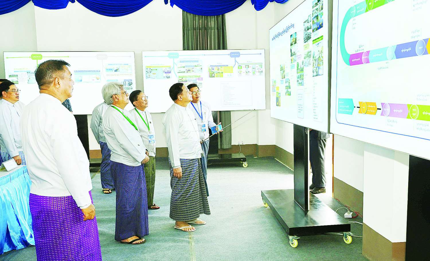 ယင်းနောက် နိုင်ငံတော်စီမံအုပ်ချုပ်ရေးကောင်စီဥက္ကဋ္ဌ နိုင်ငံတော်ဝန်ကြီးချုပ်နှင့် အခမ်းအနားတက်ရောက်လာကြသူများသည် အင်ဂျင်နီယာသမိုင်းပြခန်းများ၊ နည်းပညာဆိုင်ရာပြခန်းများ၊ ဝန်ကြီးဌာနများနှင့် အဖွဲ့အစည်းများမှ ပြသထားသော ပြခန်းများကို စိတ်ဝင်တစားဖြင့် လှည့်လည်ကြည့်ရှုကြသည်။