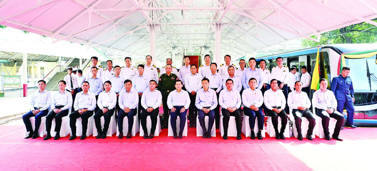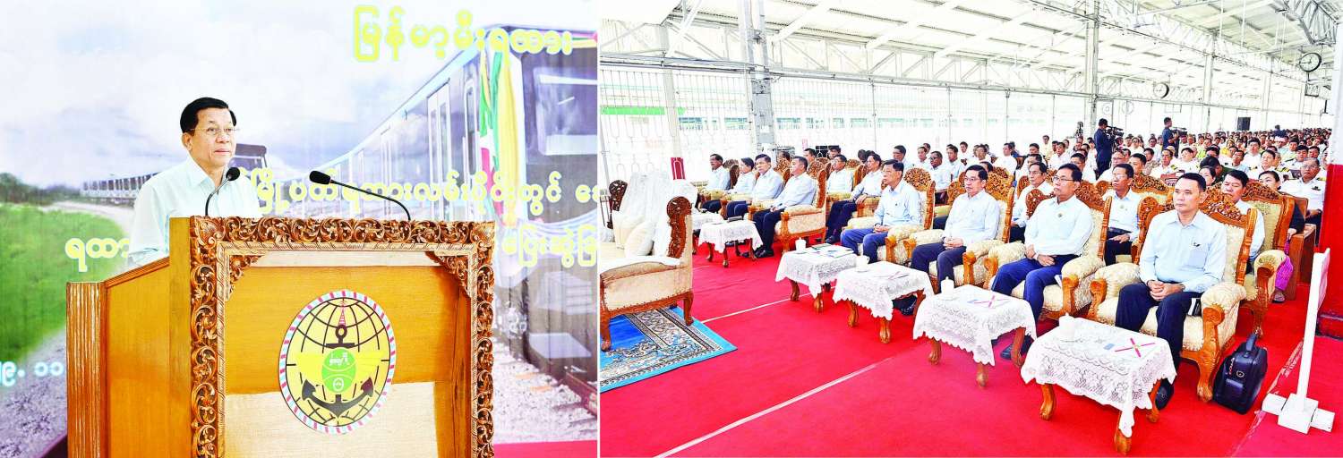 ရန်ကုန်မြို့ပတ်ရထားလမ်းပိုင်းတွင် ခေတ်မီ Diesel Electric Multiple Unit (DEMU) ရထားတွဲဆိုင်းအသစ်များဖြင့် စတင်ပြေးဆွဲခြင်း ဖွင့်ပွဲအခမ်းအနားကျင်းပ နိုင်ငံတော်စီမံအုပ်ချုပ်ရေးကောင်စီဥက္ကဋ္ဌ နိုင်ငံတော်ဝန်ကြီးချုပ် ဗိုလ်ချုပ်မှူးကြီး မင်းအောင်လှိုင် တက်ရောက်ဖွင့်လှစ်