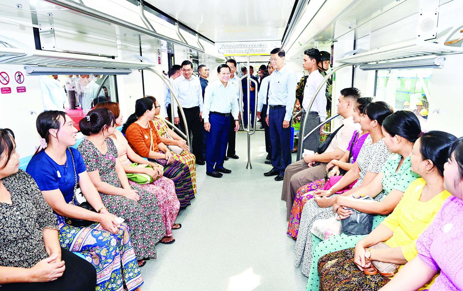 ယင်းနောက် နိုင်ငံတော်စီမံအုပ်ချုပ်ရေးကောင်စီဥက္ကဋ္ဌ နိုင်ငံတော်ဝန်ကြီးချုပ် နှင့် အဖွဲ့ဝင်များက ရန်ကုန်မြို့ပတ်လက်ယာရစ်ခရီးစဉ်အဖြစ် ခေတ်မီ DEMU ရထားတွဲဆိုင်းအသစ်များဖြင့် လိုက်ပါစီးနင်းပြီး ခရီးသွားပြည်သူများအား ရင်းရင်းနှီးနှီးနှုတ်ဆက်၍ အမှတ်တရလက်ဆောင်များ ပေးအပ်သည်။