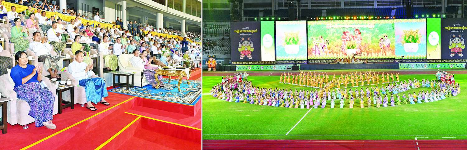 ဘောလုံးအားကစားပြိုင်ပွဲ ဗိုလ်လုပွဲအပြီးတွင် ၂ဝ၂၄ ခုနှစ်၊ ပဉ္စမအကြိမ်မြောက် အမျိုးသားအားကစားပွဲတော် ပိတ်ပွဲအခမ်းအနားကို စတင်ကျင်းပရာ မြန်မာ့ရိုးရာနှစ်သစ်ကူးအတာသင်္ကြန်ပွဲတော်အား ကမ္ဘာ့ဒြပ်မဲ့ယဉ်ကျေးမှုအမွေအနှစ် စာရင်းအဖြစ် သတ်မှတ်ခံရခြင်း အထိမ်းအမှတ်အဖြစ် “ရိုးရာအမွေလက်ဆင့်ကမ်း အတာသင်္ကြန် တစ်ခေတ်ဆန်း” အစီအစဉ်ဖြင့် သီဆိုသရုပ်ဖော်တင်ဆက်မှုကို ကြည့်ရှုအားပေးကြသည်။
