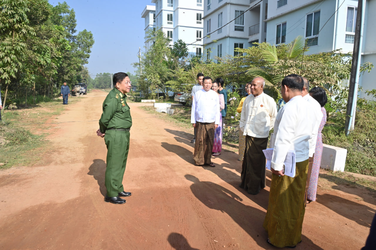ထို့နောက် နိုင်ငံတော်စီမံအုပ်ချုပ်ရေးကောင်စီဥက္ကဋ္ဌ တပ်မတော်ကာကွယ်ရေးဦးစီးချုပ်နှင့် အဖွဲ့ဝင်များသည် စစ်မှုထမ်းဟောင်းအိမ်ရာအတွင်း မော်တော်ယာဉ်များဖြင့် လှည့်လည်ကြည့်ရှု စစ်ဆေးခဲ့ပြီး အိမ်ရာသန့်ရှင်းသာယာလှပရေး၊ ရေသွင်းရေထုတ်စနစ်များ စနစ်တကျဖြစ်စေရေးအတွက် တာဝန်ရှိသူများကိုမှာကြားပြီး အိမ်ရာတွင်နေထိုင်လျက်ရှိသည့် စစ်မှုထမ်းဟောင်းများနှင့် မိသားစုဝင်များကို ရင်းရင်းနှီးနှီး နှုတ်ဆက်သည်။