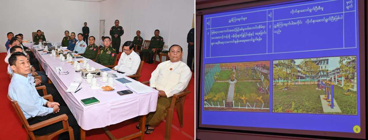 ရှင်းလင်းတင်ပြမှုများအပေါ် နိုင်ငံတော်စီမံအုပ်ချုပ်ရေးကောင်စီဥက္ကဋ္ဌ တပ်မတော်ကာကွယ်ရေးဦးစီးချုပ်က မြန်မာ့သားကောင်းအဆင့်မြင့် စစ်မှုထမ်းဟောင်းအိမ်ရာ (လေးထောင့်ကန်) အား စစ်မှုထမ်းဟောင်းမြို့အဖြစ် တည်ဆောက်နေခြင်းဖြစ်ပြီး ရန်ကုန်မြို့တော်ဖွံ့ဖြိုးရေးအတွက် တစ်ဖက်တစ်လမ်းမှ အထောက်အကူပြုသည့် စံပြုအိမ်ရာ တစ်ခုအဖြစ် ရည်မှန်းဆောင်ရွက်သွားရန်လိုကြောင်း၊ အိမ်ရာအတွင်း လိုအပ်သည့် လျှပ်စစ်ဓာတ်အားရရှိစေရေးအတွက် စီမံကိန်းလိုအပ်ချက်နှင့်ကိုက်ညီသည့် ဆိုလာလျှပ်စစ်ဓာတ်အားထုတ်လုပ်ရေးစီမံကိန်းတစ်ခုကိုလည်း စနစ်တကျတွက်ချက်၍ ထည့်သွင်းဆောင်ရွက်သွားရန်လိုကြောင်း၊ အိမ်ရာများဆောက်လုပ်ရာတွင် မြေကိုအကျိုးရှိရှိနှင့် အကွက်ကျကျအသုံးချနိုင်ရေး စနစ်တကျ တွက်ချက်ဆောင်ရွက်သွားရန်လိုကြောင်း၊ လက်ရှိအချိန်အထိ အိမ်ရာဝန်းတစ်ခုအတွင်း၌ပင် အိမ်ခန်းပေါင်း ၄၀၀၀ ကျော်ကို ဆောင်ရွက်ပေးနိုင်ခဲ့ပြီး မြို့ငယ်တစ်မြို့ကဲ့သို့ဖြစ်လာပြီဖြစ်ပြီဖြစ်၍ လိုအပ်သည်များ ဖြည့်ဆည်းပေးရန်လိုကြောင်းဖြင့်ပြောကြားပြီး အခြားလိုအပ်သည်များကို မှာကြားသည်။