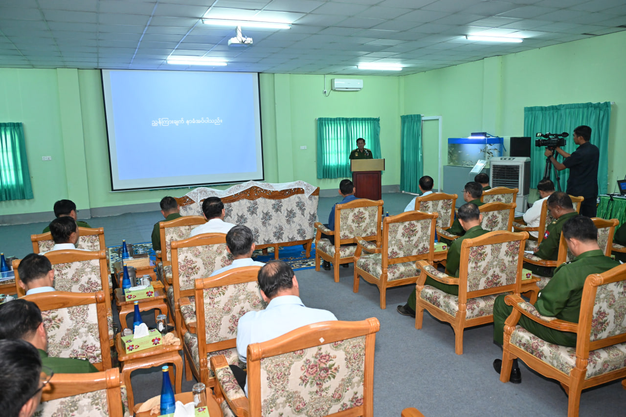 ဦးစွာ နိုင်ငံတော်စီမံအုပ်ချုပ်ရေးကောင်စီဥက္ကဋ္ဌ တပ်မတော်ကာကွယ်ရေးဦးစီးချုပ်အား မွေးမြူရေးဇုန်ရှင်းလင်းဆောင်၌ မြန်မာစီးပွားရေးကော်ပိုရေးရှင်းဥက္ကဋ္ဌ ဗိုလ်ချုပ်ကြီး ညိုစော၊ မြန်မာ့စီးပွားရေးဦးပိုင်အများနှင့်သက်ဆိုင်သော ကုမ္ပဏီလီမိတက်ဥက္ကဋ္ဌ ဒုတိယဗိုလ်ချုပ်ကြီး ဆန်းဦးနှင့်တာဝန်ရှိသူများက နိုင်ငံတော်စီမံအုပ်ချုပ်ရေးကောင်စီဥက္ကဋ္ဌ နိုင်ငံတော်ဝန်ကြီးချုပ်၏ လမ်းညွှန်ချက်များကို အကောင်အထည်ဖော် ဆောင်ရွက်လျက်ရှိမှု၊ ရွှေပြည်စိုက်ပျိုးမွေးမြူရေးဇုန် အကောင်အထည်ဖော်ဆောင်ရွက်လျက်ရှိမှု၊ သီလဝါဘက်စုံ စိုက်ပျိုးမွေးမြူရေးဇုန်နှင့် ၂၆ မိုင် ဘက်စုံစိုက်ပျိုး မွေးမြူရေးဇုန်၊ တွံ့တေးမြို့နယ်ရှိ ရွှေမုယင်းငါးကန်နှင့် ငွေပင်လယ်မွေးမြူရေးနှင့် ရေလုပ်ငန်း၊ ငွေပင်လယ်အသားတိုးနွားမွေးမြူရေးလုပ်ငန်းတို့၏ လုပ်ငန်းဆောင်ရွက်နေမှုများ၊ ထွက်ရှိလာသည့် သား၊ ငါး များနှင့် ဥအမျိုးမျိုးတို့အား သက်သာသောဈေးနှုန်းများဖြင့် ဈေးကွက်အတွင်းသို့ ဖြန့်ဖြူးရောင်းချနိုင်မှု၊ အအေးခန်းစက်ရုံ (လှိုင်သာယာ) ၏ လုပ်ငန်း ဆောင်ရွက်လျက်ရှိမှု၊ ရှေ့ဆက်ဆောင်ရွက်သွားမည့် လုပ်ငန်းစဉ်များ၊ စွန်ရဲအင်းမွေးမြူရေးဇုန်၌ နို့စားနွား၊ အသားတိုးနွား၊ ဥစားကြက်၊ ဆိတ်မွေးမြူနိုင်ရေး ဆောင်ရွက်လျက်ရှိမှုနှင့် အစာစပ်စက်ရုံ တည်ဆောက်နိုင်ရေး လျာထားဆောင်ရွက်လျက်ရှိမှုတို့နှင့်ပတ်သက်၍ အသီးသီးရှင်းလင်းတင်ပြကြသည်။