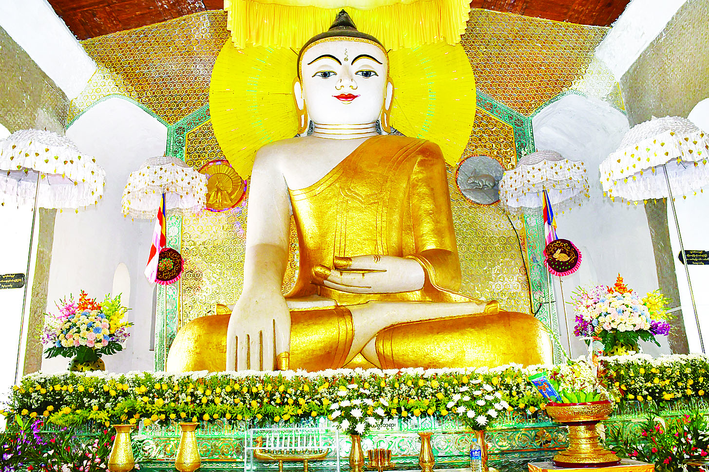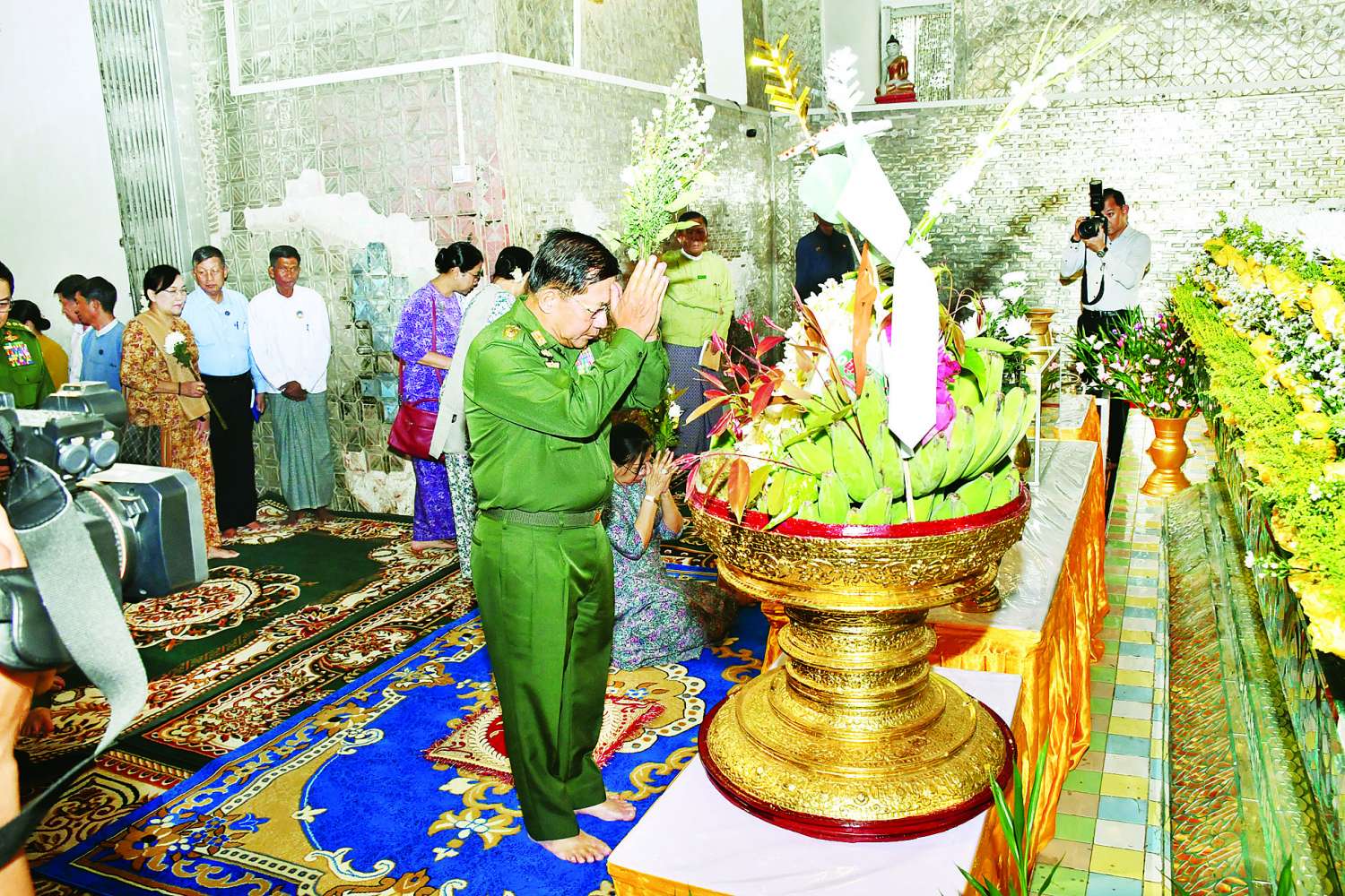 ယင်းနောက် နိုင်ငံတော်စီမံအုပ်ချုပ်ရေးကောင်စီဥက္ကဋ္ဌ နိုင်ငံတော်ဝန်ကြီးချုပ်သည် ဘုရားကြီး ဧည့်သည်တော်မှတ်တမ်းစာအုပ်တွင် လက်မှတ်ရေးထိုးပူဇော်ပြီး နိုင်ငံတော်စီမံအုပ်ချုပ်ရေးကောင်စီဥက္ကဋ္ဌ နိုင်ငံတော်ဝန်ကြီးချုပ်နှင့် ဇနီးတို့က ဘုရားကြီးအတွက် ဘက်စုံအလှူတော်ငွေများကို ပေးအပ်လှူဒါန်းရာ ဂေါပကအဖွဲ့ဝင်များက လက်ခံရယူပြီး ဓမ္မလက်ဆောင်များ ပြန်လည်ပေးအပ်သည်။