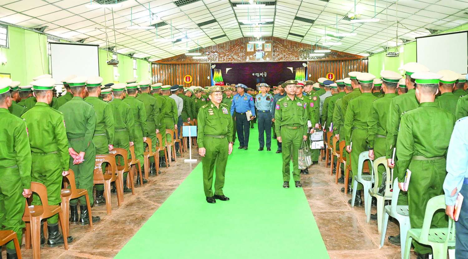 ရှင်းလင်းတင်ပြမှုများအပေါ် နိုင်ငံတော်စီမံအုပ်ချုပ်ရေးကောင်စီဥက္ကဋ္ဌ တပ်မတော်ကာကွယ်ရေးဦးစီးချုပ်က လုံခြုံရေးပိုင်းဆိုင်ရာများနှင့်ပတ်သက်၍ နယ်မြေခံတပ်များအနေဖြင့် အရပ်ဘက်အုပ်ချုပ်ရေးအဖွဲ့အစည်းများနှင့် ပူးပေါင်းဆောင်ရွက်သွားကြရန် လိုကြောင်း၊ လုံခြုံရေးနှင့်ပတ်သက်ပါက လုံခြုံရေးအသိ၊ လုံခြုံရေးသတိဖြင့် ဆောင်ရွက်သွားရမည်ဖြစ်ပြီး မိမိတို့တာဝန်ထမ်းဆောင်ရသည့် နယ်မြေဒေသအလိုက် ဒေသနှင့်ဒေသခံများ၏ အကျိုးစီးပွားများ မထိခိုက်အောင် အထူးဂရုပြုဆောင်ရွက်ကြရမည် ဖြစ်ကြောင်း၊ လုံခြုံရေးသည် တစ်ဦးချင်းဆောင်ရွက်၍ ရနိုင်သည့်ကိစ္စရပ်ဖြစ်ပြီး ကာကွယ်ရေးသည် ကြီးကြပ်ကွပ်ကဲသူများက ရေရှည်စီမံချက်များ၊ ကြိုတင်မျှော်တွေးခြင်းများ၊ ပေါင်းစပ်ညှိနှိုင်းခြင်းများဖြင့် ဆောင်ရွက်ရသည့်ကိစ္စရပ် ဖြစ်ကြောင်း၊ မိမိတို့ တာဝန်ထမ်းဆောင်ရသည့် ဒေသတွင်း လုံခြုံရေးနှင့်ကာကွယ်ရေးတာဝန်များကို ထမ်းဆောင်ရာတွင် အမျိုးသားအကျိုးစီးပွားကို ထိခိုက်စေနိုင်သည်မှန်သမျှကို ကာကွယ်နိုင်ရေးအမြင်ကျယ်ကျယ်ဖြင့် ဆောင်ရွက်ကြရန်လိုကြောင်း၊ မူးယစ်ဆေးဝါးနှင့် ပတ်သက်၍ ထုတ်လုပ်ခြင်း၊ သိုလှောင်ခြင်း၊ သယ်ဆောင်ဖြန့်ဖြူးခြင်းဟူ၍ရှိပြီး ကွင်းဆက်များကို ဖိဖိစီးစီးဖြင့် ဖော်ထုတ်နှိမ်နှင်းသွားရန်လိုကြောင်း၊ ရှမ်းပြည်နယ်အတွင်း မူးယစ်ဆေးဝါးများ ထုတ်လုပ်ခြင်းမရှိစေရေး သက်ဆိုင်ရာ နယ်မြေအလိုက် တာဝန်ရှိသူများအနေဖြင့် အလေးထား ကြပ်မတ်ဆောင်ရွက်သွားရန်လိုကြောင်း၊ အကြမ်းဖက်သမားများအနေဖြင့် မူးယစ်ဆေးဝါးထုတ်လုပ်ခြင်းမှ ရရှိလာသည့် အရင်းအမြစ်များဖြင့် အကြမ်းဖက်လုပ်ရပ်များကို လုပ်ဆောင်နေကြခြင်းဖြစ်သဖြင့် မူးယစ်ဆေးဝါးနှင့်ပတ်သက်လာပါက ပြတ်ပြတ်သားသား နှိမ်နင်းဆောင်ရွက်သွားကြရန်လိုကြောင်းနှင့် အခြားလိုအပ်သည်များ လမ်းညွှန်မှာကြားသည်။