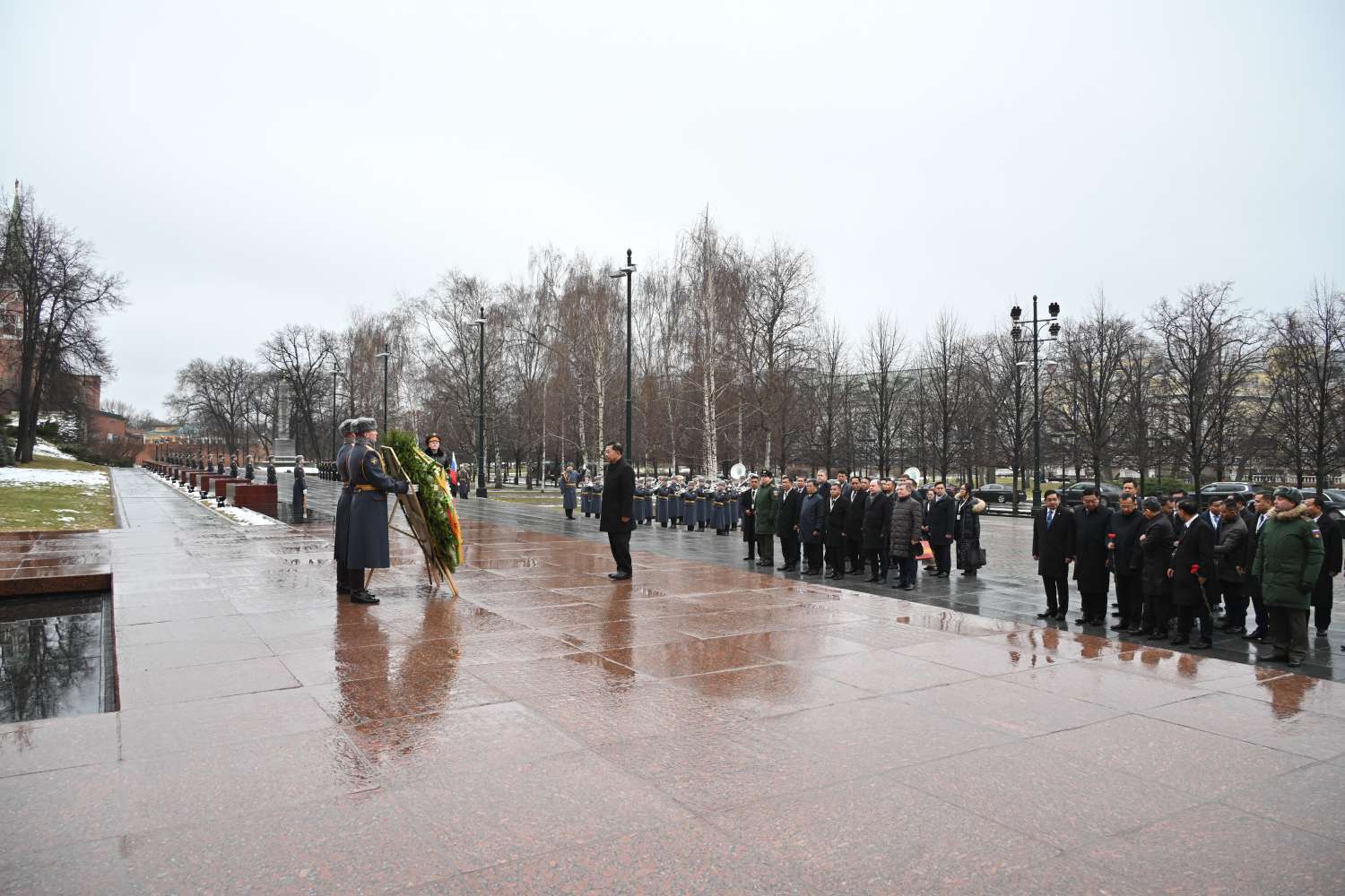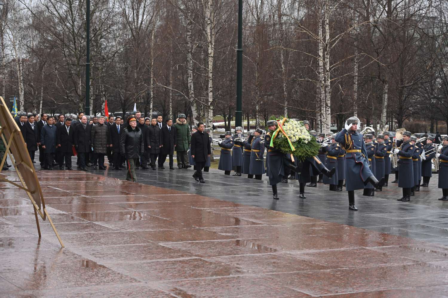 ရုရှားဖက်ဒရေးရှင်းနိုင်ငံ၊ မော်စကိုမြို့သို့ တရားဝင်ချစ်ကြည်ရေးခရီးရောက်ရှိနေသည့် နိုင်ငံတော်စီမံအုပ်ချုပ်ရေးကောင်စီဥက္ကဋ္ဌ နိုင်ငံတော်ဝန်ကြီးချုပ် ဗိုလ်ချုပ်မှူးကြီး မင်းအောင်လှိုင်သည် ယနေ့နံနက်ပိုင်းတွင် မော်စကိုမြို့ရှိ အညတရစစ်သည်ဂူဗိမာန်၌ လွမ်းသူပန်းခွေချအလေးပြုသည်။