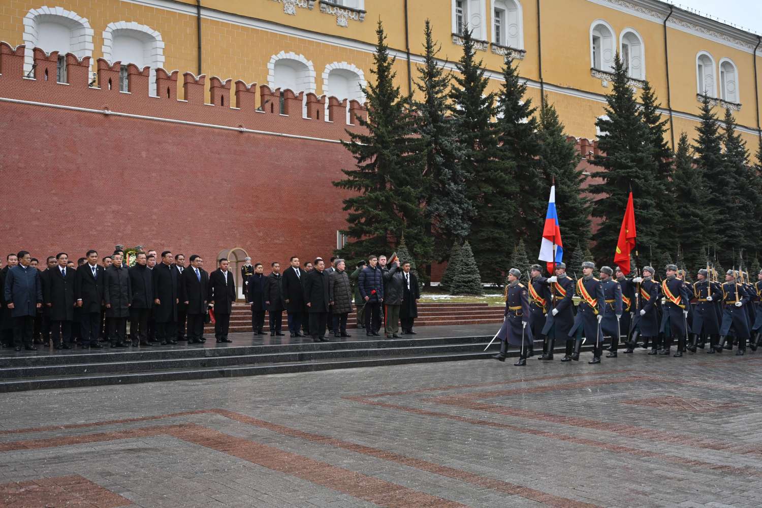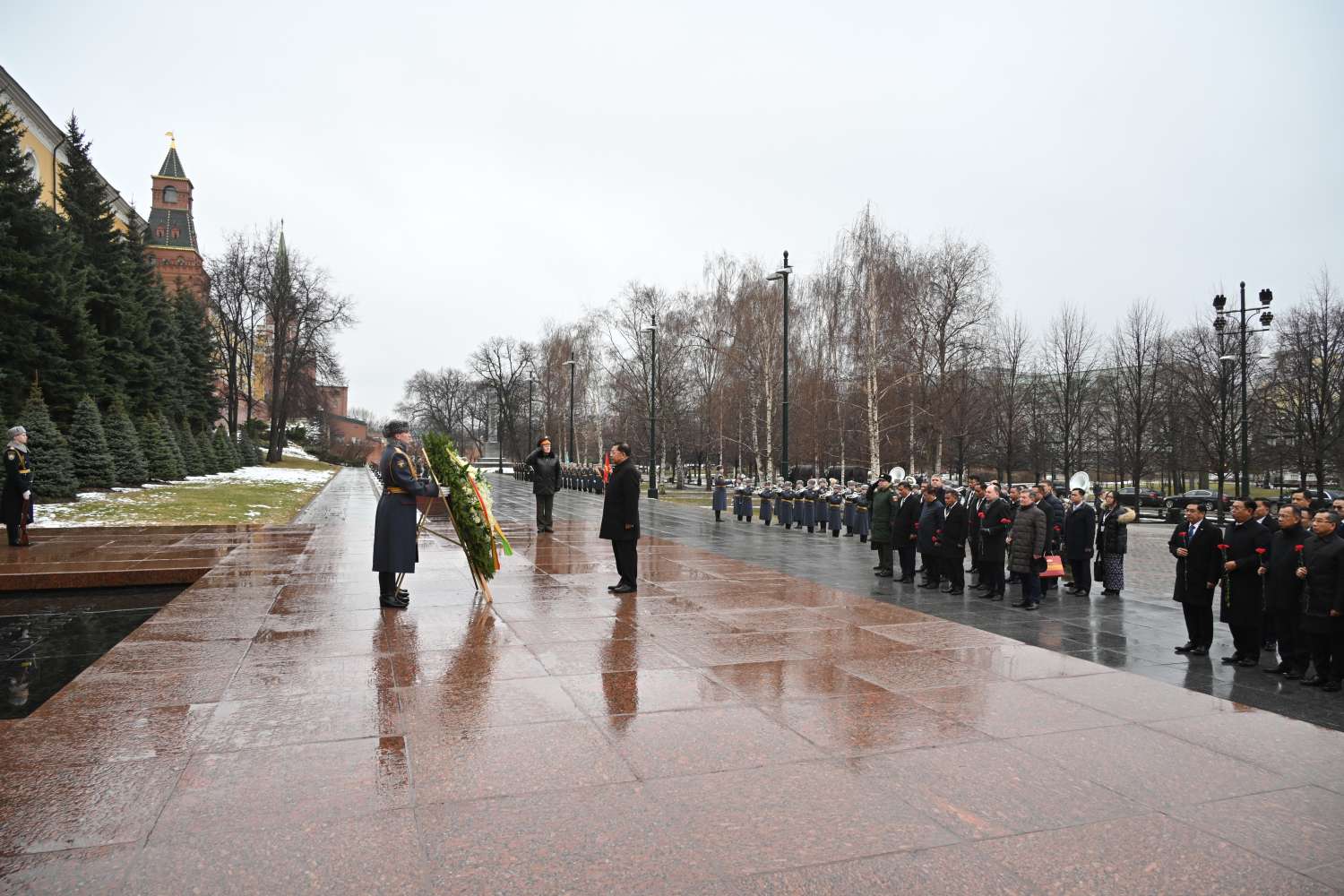 နိုင်ငံတော်စီမံအုပ်ချုပ်ရေးကောင်စီဥက္ကဋ္ဌ နိုင်ငံတော်ဝန်ကြီးချုပ် ဗိုလ်ချုပ်မှူးကြီး မင်းအောင်လှိုင် မော်စကိုမြို့ရှိ အညတရစစ်သည် ဂူဗိမာန်၌ လွမ်းသူပန်းခွေချအလေးပြု