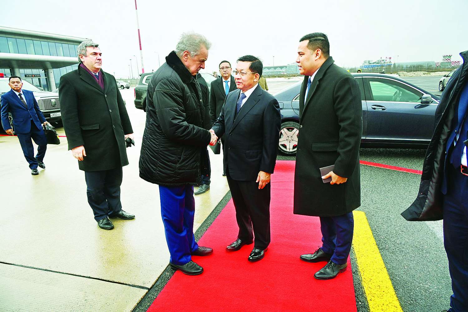 ရုရှားဖက်ဒရေးရှင်းနိုင်ငံသမ္မတ H.E. Vladimir Vladimirovich Putin ၏ ဖိတ်ကြားချက်အရ ရုရှားနိုင်ငံ၌ တရားဝင်ချစ်ကြည်ရေးခရီးရောက်ရှိနေသည့် နိုင်ငံတော်စီမံအုပ်ချုပ်ရေးကောင်စီဥက္ကဋ္ဌ နိုင်ငံတော်ဝန်ကြီးချုပ် ဦးဆောင်သည့် မြန်မာအဆင့်မြင့်ချစ်ကြည်ရေးကိုယ်စားလှယ်အဖွဲ့သည် ယနေ့ဒေသစံတော်ချိန် မွန်းလွဲပိုင်းတွင် ဘီလာရုစ်နိုင်ငံသမ္မတ မစ္စတာလူကာရှန်းကော့၏ ဖိတ်ကြားချက်အရ ဘီလာရုစ်နိုင်ငံသို့ ချစ်ကြည်ရေးခရီးဆက်လက်သွားရောက်ရန်အတွက် စိန့်ပီတာစဘတ်မြို့ရှိ Pulikovo အပြည်ပြည်ဆိုင်ရာလေဆိပ်မှ ပြန်လည်ထွက်ခွာကြရာ စိန့်ပီတာစဘတ်အစိုးရအဖွဲ့ ပြည်ပဆက်ဆံရေးကော်မတီဥက္ကဋ္ဌ Mr. Grigoriev Evgeny Dmitrievich ၊ မြန်မာကောင်စစ်ဝန်ချုပ် ဦးအောင်ဖေသက်နှင့် တာဝန်ရှိသူများက လေဆိပ်၌ ပို့ဆောင်နှုတ်ဆက်ကြသည်။