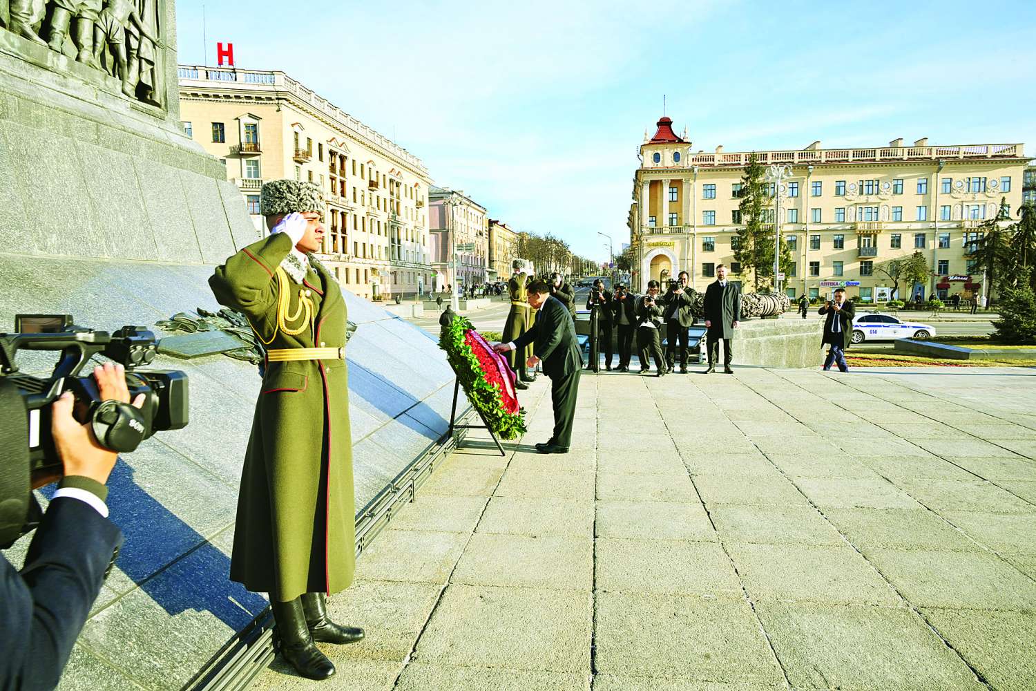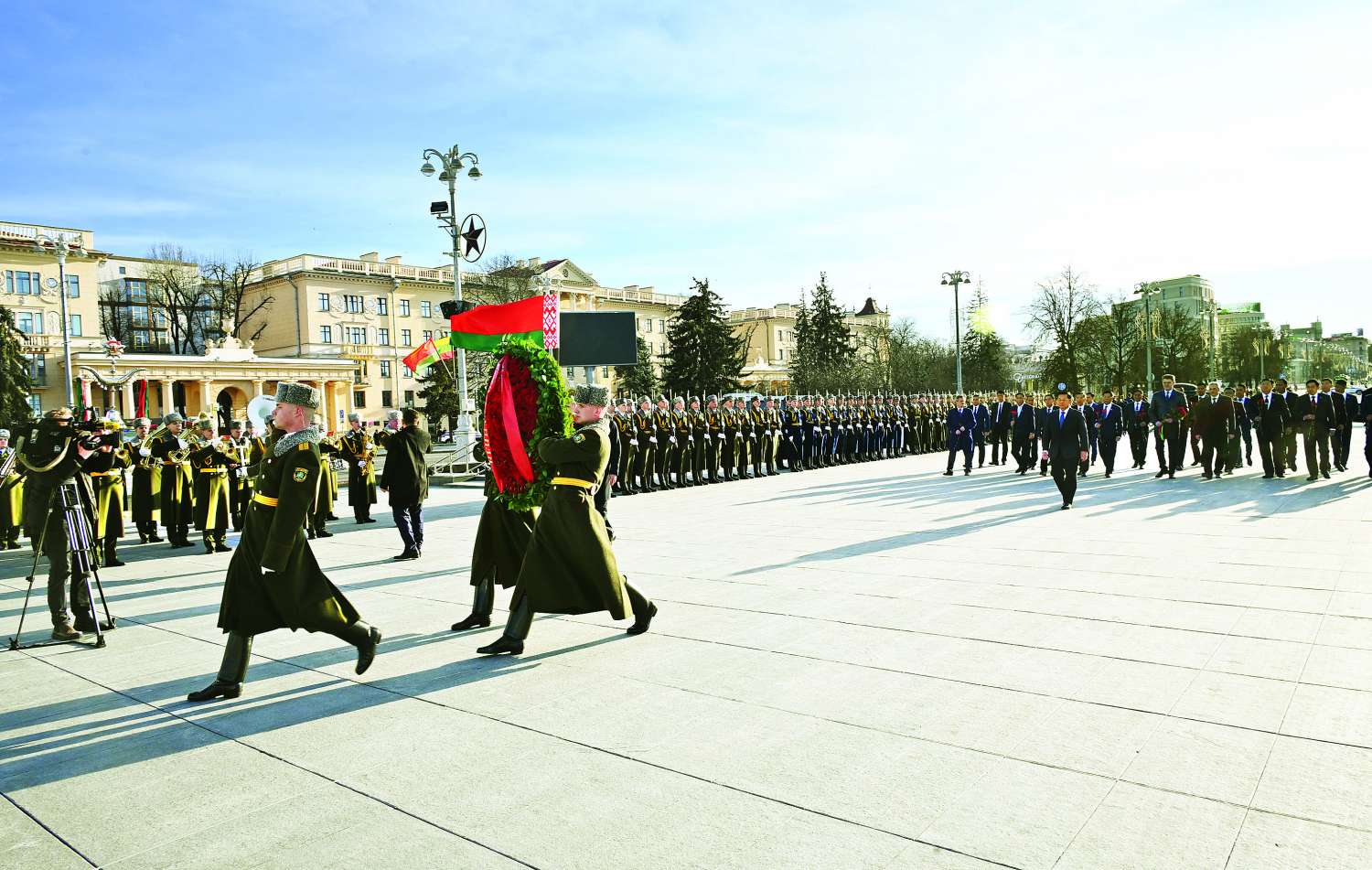 ဆက်လက်၍ နိုင်ငံတော်စီမံအုပ်ချုပ်ရေးကောင်စီဥက္ကဋ္ဌ နိုင်ငံတော်ဝန်ကြီးချုပ်က The Victory Monument ၌ လွမ်းသူ့ပန်းခွေချအလေးပြုသည်။ လွမ်းသူပန်းခွေချအလေးပြုစဉ်အချိန်၌ ဘီလာရုစ်နိုင်ငံ ဂုဏ်ပြုတပ်ဖွဲ့က ပြည်ထောင်စုသမ္မတမြန်မာနိုင်ငံတော် နိုင်ငံတော်သီချင်းနှင့် ဘီလာရုစ်သမ္မတနိုင်ငံတော်သီချင်းတို့အား တီးမှုတ်ကြသည်။