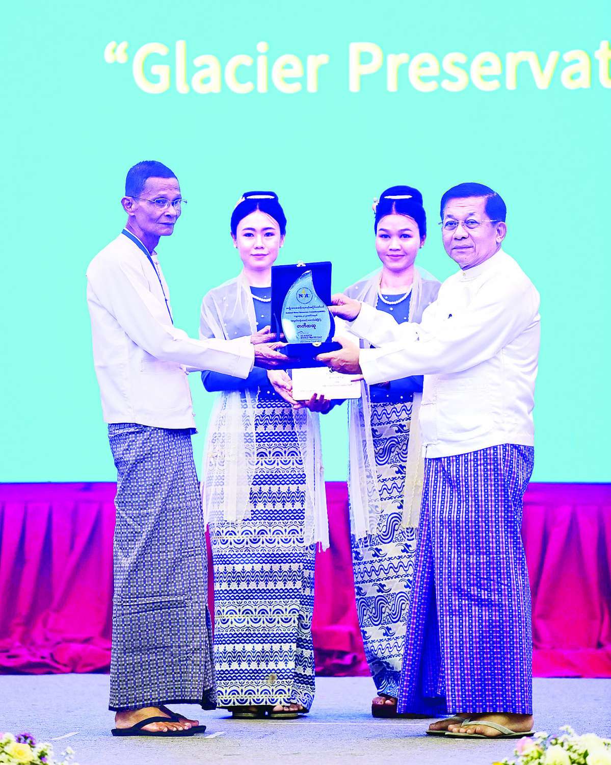ထို့နောက် နိုင်ငံတော်စီမံအုပ်ချုပ်ရေးကောင်စီဥက္ကဋ္ဌ နိုင်ငံတော်ဝန်ကြီးချုပ်က ကမ္ဘာ့ရေနေ့ ၂၀၂၅ အထိမ်းအမှတ်အလွတ်တန်းအဆင့်ဆောင်းပါးပြိုင်ပွဲတွင် ပထမ၊ ဒုတိယနှင့် တတိယ ဆုရရှိခဲ့ကြသူများကို ဆုများပေးအပ်ချီးမြှင့်သည်။