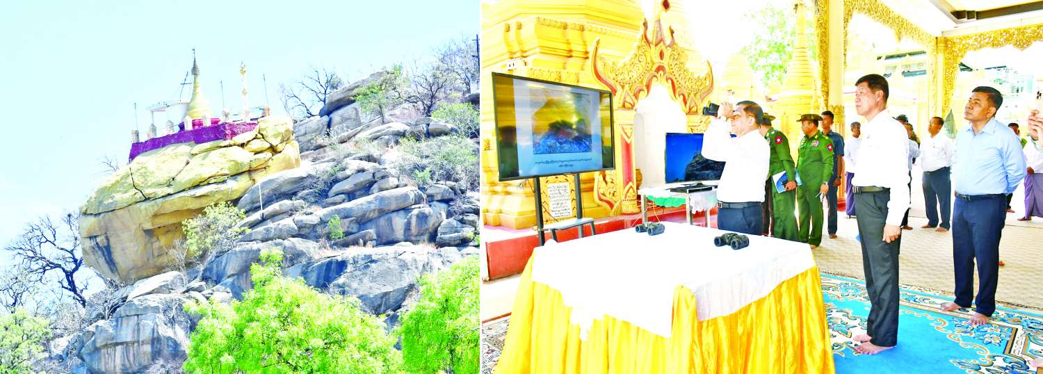 ယင်းနောက် ကျောက်သေတ္တာစေတီတည်ရှိနေမှုကို ကြည့်ရှုစစ်ဆေးပြီး တာဝန်ရှိသူများ၏ ကျောက်သေတ္တာစေတီ တည်ရှိနေမှုနှင့်ပတ်သက်သည့် တင်ပြချက်များအပေါ် နိုင်ငံတော်စီမံအုပ်ချုပ်ရေးကောင်စီဥက္ကဋ္ဌ နိုင်ငံတော်ဝန်ကြီးချုပ်က ကျောက်သေတ္တာစေတီနေရာကို Drone ဖြင့် အသေးစိတ်ရိုက်ကူး၍ အချက်အလက်ရယူရန်၊ မိုင်းခွဲဖြိုချခြင်းမပြုရန်၊ တောင်အောက်ရှိအများပြည်သူများ အန္တရာယ်ကင်းရှင်းစေရန်အတွက် ကျောက်သေတ္တာကြီးအောက်ခြေမှနေ၍ အရည်အသွေးပြည့်မီသည့် ကွန်ကရစ်များဖြင့် RC လောင်းပြီး ထိန်းသိမ်းဆောင်ရွက်ရန်နှင့် ကျောက်တုံးတော်ကြီးအောက်ရှိ စျေးဆိုင်တန်းများ အန္တရာယ်မဖြစ်စေရေးဆောင်ရွက်သွားရန် လမ်းညွှန်မှာကြားသည်။