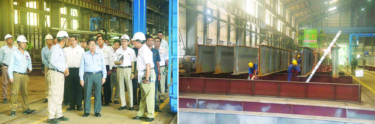 တင်ပြမှုများနှင့် စပ်လျဉ်း၍ နိုင်ငံတော်စီမံအုပ်ချုပ်ရေးကောင်စီဥက္ကဋ္ဌ နိုင်ငံတော်ဝန်ကြီးချုပ်က သံမဏိထုတ်လုပ်ရေးလုပ်ငန်းသည် နိုင်ငံတော်အတွက် မဖြစ်မနေလိုအပ်သည့် လုပ်ငန်းဖြစ်ပြီး စက်ရုံအနေဖြင့် တာဝါတိုင်များ၊ တံတားသံပေါင်များကို စနစ်တကျဖြင့် ဆက်လက်ထုတ်လုပ်သွားရန်လိုကြောင်း၊ အဓိကအားဖြင့် တည်ဆောက်ရေးလုပ်ငန်းများအတွက် Deformed Bar များ လိုအပ်သဖြင့် ပြည်တွင်း၌ လုံလောက်စွာ ထုတ်လုပ်နိုင်ရေးဆောင်ရွက်သွားရန်လိုကြောင်း၊ ဆောက်လုပ်ရေးသုံးသံမဏိများကို ပြည်ပမှ နှစ်စဉ်ဝယ်ယူနေရပါက နိုင်ငံတော်အတွက် ငွေကြေးကုန်ကျမှုများပြားနေဦးမည်ဖြစ်ကြောင်း၊ ပြည်တွင်း၌ လုံလောက်စွာ ထုတ်လုပ်နိုင်ရန်အတွက် ရှိပြီးဖြစ်သည့် သံအရင်းအမြစ်များကို စနစ်တကျဖြင့် ထုတ်ယူအသုံးချသွားရန်လိုကြောင်း၊ ပထမဦးစားပေးအနေ ဖြင့် Steel Billet များကို ထုတ်လုပ်သွားနိုင်ရန်လိုပြီး ထိုမှတစ်ဆင့် ဆောက်လုပ်ရေးလုပ်ငန်းသုံး Deformed Bar များ ထုတ်လုပ်သွားနိုင်ရန်လိုကြောင်း၊ ပြည်တွင်း၌ရှိပြီးဖြစ်သည့် သံမဏိစက်ရုံများ အဆင့်မြှင့်တင်ခြင်း လုပ်ငန်းများကိုလည်း ဆက်လက်ဆောင်ရွက်သွားရန်လိုကြောင်း၊ မန္တလေးငလျင်ကြီး လှုပ်ခတ်ခဲ့ချိန်တွင်လည်း အချို့ဆောက်လုပ်ရေးလုပ်ငန်းသုံးသံမဏိများမှာ အရည်အသွေးပြည့်မီမှုမရှိသည်ကို စစ်ဆေးတွေ့ရှိခဲ့ရပြီး မိမိတို့အတွက် သင်ခန်းစာပင်ဖြစ်ကြောင်း၊ ဆောက်လုပ်ရေးလုပ်ငန်းများတွင် ခိုင်ခံ့စွာတည်ဆောက်နိုင်ရေးအတွက် အရည်အသွေးပြည့်မီသည့် ဆောက်လုပ်ရေးသုံးသံမဏိများကို ထုတ်လုပ်သွားနိုင်ရန်လိုကြောင်း မှာကြားသည်။