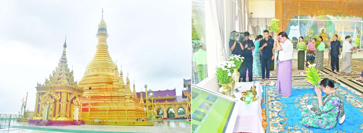 ထို့နောက် နိုင်ငံတော်လုံခြုံရေးနှင့် အေးချမ်းသာယာရေးကော်မရှင်ဥက္ကဋ္ဌနှင့် ဇနီးတို့သည် စေတီတော်မြတ်ကြီးအား လက်ယာရစ်လှည့်လည် ဖူးမြော်ကြည်ညိုပြီး မဟာအတုလရသီတန်ဆောင်းအတွင်းရှိ ဗုဒ္ဓမြတ်စွယ်တော်ပွားနှင့် စေတီတော်မြတ်ကြီး၏ ပုံတူစေတီတော်အား ဖူးမြော်ကြည်ညိုကြသည်။ ဆက်လက်၍ စေတီတော်မြတ်ကြီးရင်ပြင်တော် တိုးချဲ့ဆောင်ရွက်နေမှုအခြေအနေအား ကြည့်ရှုစစ်ဆေးပြီး တာဝန်ရှိသူများ၏ တင်ပြချက်များအပေါ် လိုအပ်သည်များ လမ်းညွှန်မှာကြားသည်။