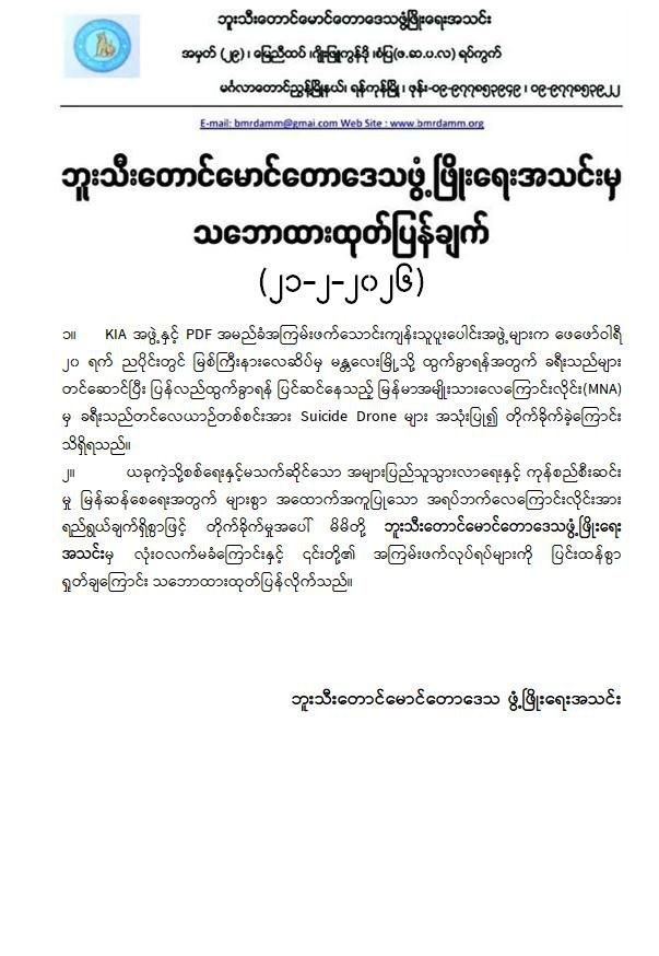 အကြမ်းဖက်အဖွဲ့များအနေဖြင့် စစ်ရေးနှင့်မသက်ဆိုင်သည့် အများပြည်သူ အသုံးပြုလျက်ရှိသော အရပ်ဘက်လေကြောင်းလိုင်းအား ရည်ရွယ်ချက်ရှိစွာဖြင့် တိုက်ခိုက်ခဲ့ခြင်းသည် ဂျီနီဗာကွန်ဗင်းရှင်းများနှင့် အပြည်ပြည်ဆိုင်ရာဥပဒေတို့အရ စစ်ရာဇဝတ်မှု (War Crime) ကို ကျူးလွန်ခြင်းဖြစ်ပြီး ၎င်းတို့၏ အကြမ်းဖက်လုပ်ရပ်များအပေါ် ဒေသခံပြည်သူများအပြင် တစ်နိုင်ငံလုံးရှိ ပြည်သူလူထုတစ်ရပ်လုံးကပါ လုံးဝလက်ခံနိုင်ခြင်းမရှိဘဲ စက်ဆုတ်ရွံရှာစွာ ဝိုင်းဝန်းကန့်ကွက်ရှုတ်ချလျက်ရှိသည်။