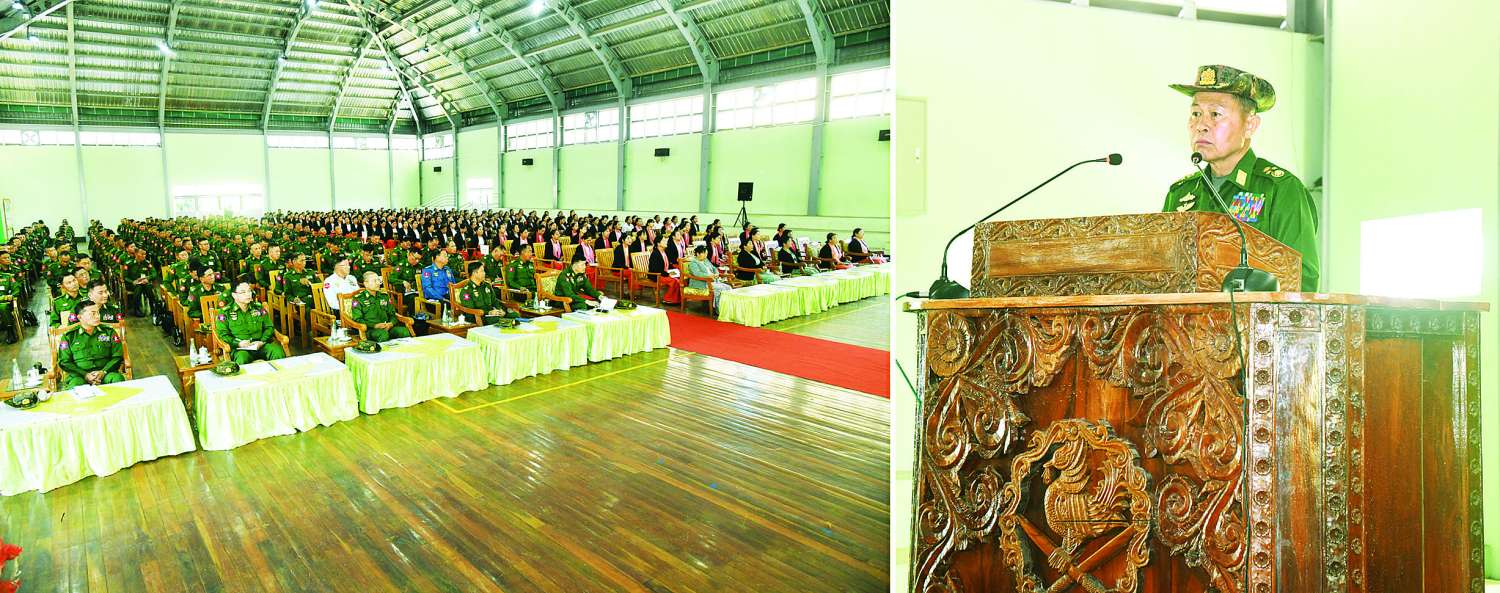 တပ်မတော်သားများသည် သစ္စာအဓိဌာန်(၄)ချက်ကို ရွတ်ဆိုနေကြသူများဖြစ်ပြီး နိုင်ငံတော်နှင့် ပြည်သူကို သစ္စာခံထားသူများဖြစ်၍ ၂၄ နာရီပေးအပ်သည့် အမိန့်နှင့်တာဝန်များကို သင်ကြားလေ့ကျင့်ပေးသည့် စစ်ပညာရပ်များကိုအသုံးချ၍ ကျေပွန်စွာထမ်းဆောင်နိုင်ရန်လိုအပ်ကြောင်း၊ ထိုသို့ထမ်းဆောင်ရာတွင် တုံးတိုက်တိုက်၊ ကျားကိုက်ကိုက် စိတ်ဓာတ်၊ လှေခွက်ချည်ကျန် အလံမလှဲသည့် စိတ်ဓာတ်တို့ဖြင့် မဆုတ်မနစ် ထမ်းဆောင်ကြရန်လိုကြောင်း၊ စစ်ဆင်ရေး၊ လုံခြုံရေးတာဝန်ထမ်းဆောင်ရာတွင် သင်ကြားပေးသည့် စစ်ပညာများကို မှန်မှန်ကန်ကန် အသုံးချရန်နှင့်တပ်ဆင်ပေးထားသည့် လက်နက်၊ ခဲယမ်း၊ ကိရိယာများကို အပြည့်အဝ ထိရောက်စွာအသုံးချရန်လိုကြောင်း၊ သို့မှသာ ပြည်သူ၏ အသက်အိုးအိမ်စည်းစိမ်ကို ကောင်းမွန်စွာကာကွယ် စောင့်ရှောက်နိုင်မည်ဖြစ်ကြောင်း ဦးစွာပြောကြားသည်။