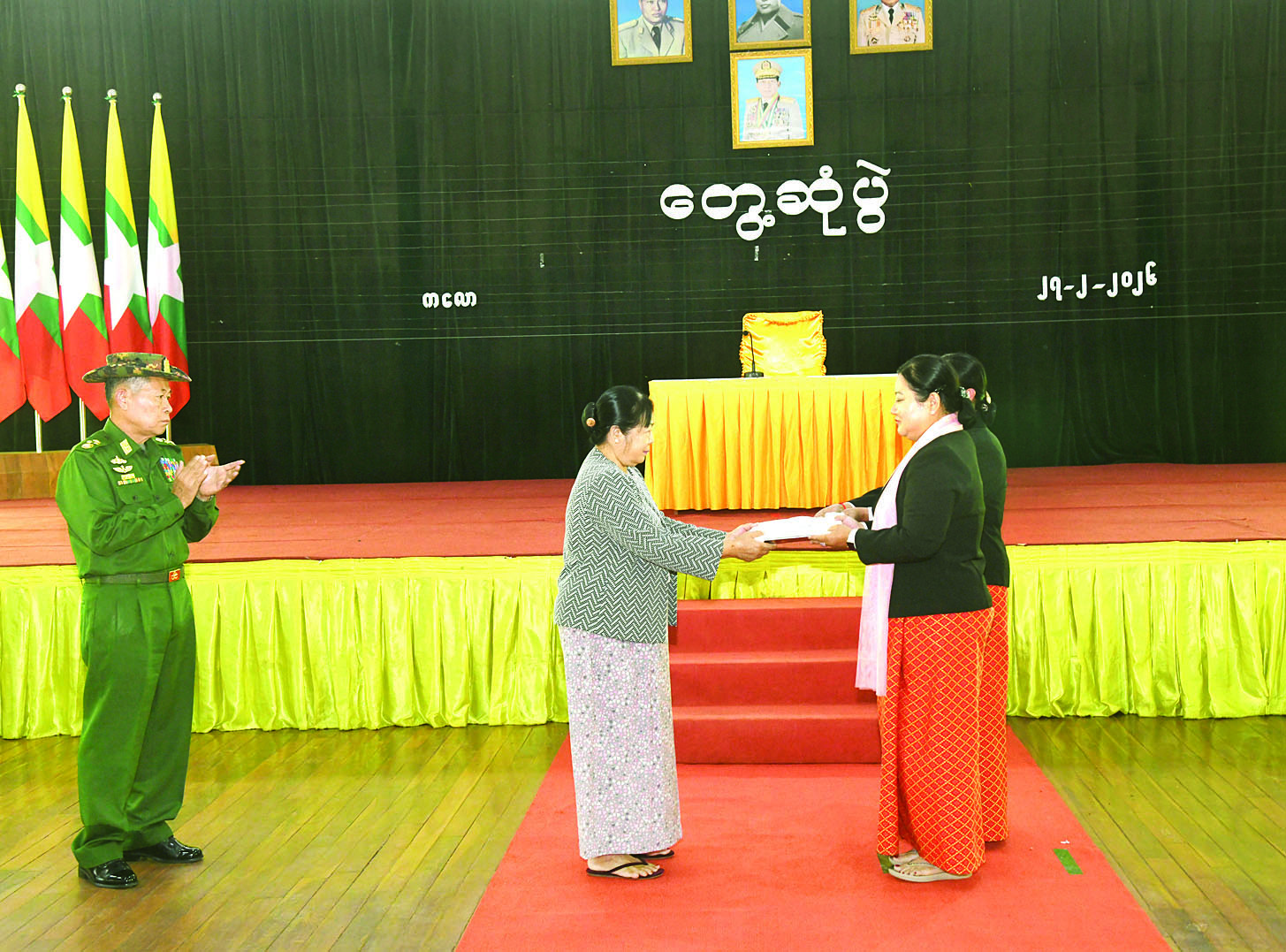 တွေ့ဆုံပွဲအပြီးတွင် နိုင်ငံတော်လုံခြုံရေးနှင့် အေးချမ်းသာယာရေးကော်မရှင် ဒုတိယဥက္ကဋ္ဌ ဒုတိယတပ်မတော်ကာကွယ်ရေးဦးစီးချုပ် ကာကွယ်ရေးဦးစီးချုပ်(ကြည်း) ဒုတိယဗိုလ်ချုပ်မှူးကြီး စိုးဝင်းက အရာရှိ၊ စစ်သည်၊ မိသားစုများအတွက် စားသောက်ဖွယ်ရာများကိုလည်းကောင်း၊ နိုင်ငံတော်လုံခြုံရေးနှင့် အေးချမ်းသာယာရေးကော်မရှင် ဒုတိယဥက္ကဋ္ဌ ဒုတိယတပ်မတော်ကာကွယ်ရေးဦးစီးချုပ် ကာကွယ်ရေးဦးစီးချုပ်(ကြည်း)၏ ဇနီးဒေါ်သန်းသန်းနွယ်က မိခင်နှင့်ကလေးစောင့်ရှောက်ရေးအသင်းအတွက် ချီးမြှင့်ငွေများကိုလည်းကောင်း ပေးအပ်ရာ တာဝန်ရှိသူများက အသီးသီးလက်ခံရယူကြသည်။