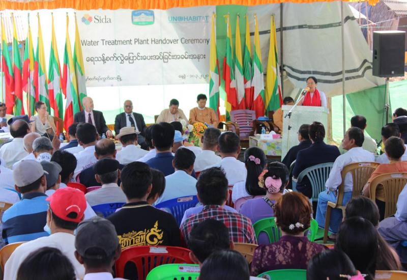ရန်ကုန်တိုင်းဒေသကြီး ဒလမြို့နယ်၌ ဒေသခံပြည်သူများ နှစ်စဉ်နွေရာသီကာလအတွင်း ရေရှားပါးမှုမှ ကင်းဝေးစေရေးနှင့် သောက်သုံးရေ ရရှိစေရေးအတွက် ရည်ရွယ်၍ ဆွီဒင်နိုင်ငံ Swedish International Development Agency (SIDA) ၏ ထောက်ပံ့လှူဒါန်းငွေဖြင့် UN-Habitat နှင့် ရန်ကုန်မြို့တော်စည်ပင်သာယာရေး ကော်မတီတို့ပူးပေါင်း အကောင်အထည်ဖော် ဆောင်ရွက်သည့် ရေသန့်စက်ရုံသစ် ဖွင့်ပွဲအခမ်းအနားကို ယမန်နေ့ နံနက် ၉ နာရီက ဒလမြို့နယ် မှော်စက်ရပ်ကွက် ပုလဲလမ်းရှိ အဆိုပါ ရေသန့်စက်ရုံသစ်ရှေ့တွင် ကျင်းပခဲ့သည်။