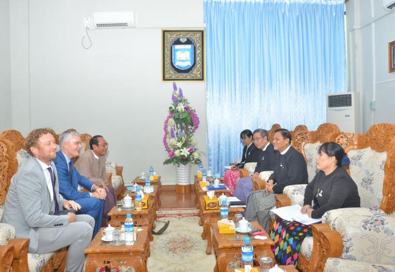 ပြည်ထောင်စုရှေ့နေချုပ် ဦးထွန်းထွန်းဦးသည် MyJustice မှ Team Leader Mr. Ross Clarke နှင့် အဖွဲ့ကို ယနေ့နံနက် ၁၁ နာရီတွင် နေပြည်တော်ရှိ ပြည်ထောင်စုရှေ့နေချုပ်ရုံး ဧည့်ခန်းမ၌ တွေ့ဆုံသည်။