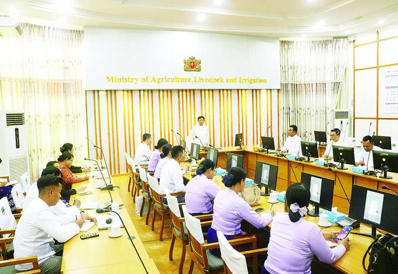 စိုက်ပျိုးရေး၊ မွေးမြူရေးနှင့် ဆည်မြောင်းဝန်ကြီးဌာန ဒုတိယဝန်ကြီး ဒေါက်တာတင်ထွဋ်သည် ရေဆင်းစိုက်ပျိုးရေးတက္ကသိုလ်၊ စိုက်ပျိုးရေးသုတေသနဦးစီးဌာန၊ အမျိုးသားဉာဏ်ရည်တု နည်းပညာဖွံ့ဖြိုးတိုးတက်ရေးဦးစီးဌာနမှ ပါမောက္ခများ၊ သုတေသနပညာရှင်များ၊ တာဝန်ရှိသူများအား ယနေ့နံနက်ပိုင်းက နေပြည်တော် ရုံးအမှတ် (၁၅) အစည်းအဝေးခန်းမ၌ တွေ့ဆုံဆွေးနွေးသည်။