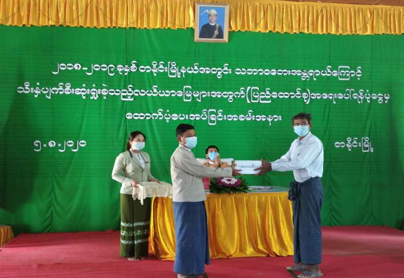 ကချင်ပြည်နယ်၊ မြစ်ကြီးနားခရိုင်၊ တနိုင်းမြို့နယ်တွင် ၂၀၁၉ ခုနှစ်အတွင်း သဘာဝဘေးအန္တရာယ် ရေကြီးရေလျှံမှုများကြောင့် စိုက်ပျိုးသီးနှံပင်များ ပျက်စီးဆုံးရှုံးမှုများဖြစ်ပေါ်ခဲ့ရာ တောင်သူများ အနေဖြင့် ပျက်စီးဆုံးရှုံးများအတွက် သက်သာမှုရရှိစေရန်ရည်ရွယ်၍ နိုင်ငံတော်အစိုးရ၏ (ပြည်ထောင်စု) အရေးပေါ်ရန်ပုံငွေမှ ထောက်ပံ့ကြေးပေးအပ်ခြင်းအခမ်းအနားကို ယမန်နေ့ မွန်းလွဲ(၁)နာရီက မြို့နယ်အထွေထွေအုပ်ချုပ်ရေးဦးစီးဌာန အစည်းအဝေးခန်းမ၌ ကျင်းပ ဆောင်ရွက်ခဲ့သည်။
